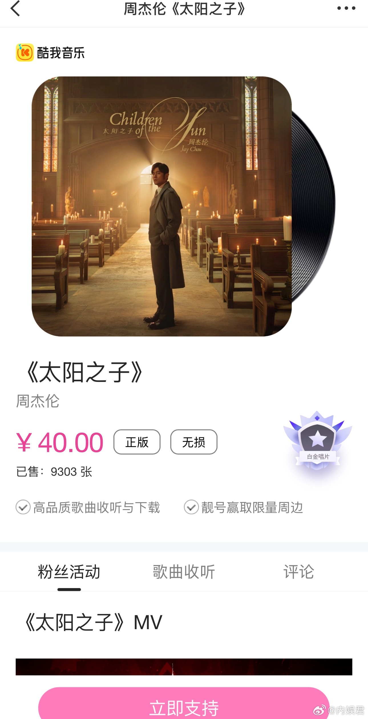 周杰伦新专辑年榜第一 周杰伦全新数字专辑《太阳之子》发行首日,销售额成功登顶20