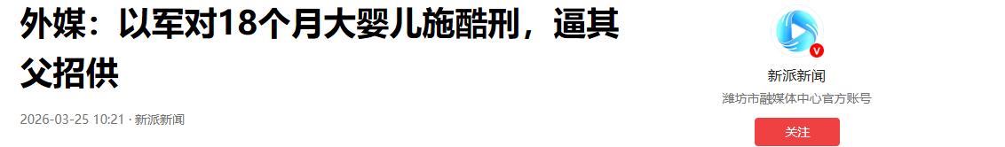 以色列简直丧心病狂!对着18个月大的婴儿实施酷刑:拿烟头烫,用钉子刺 见过毫无底线的恶,但你绝对想不到,以军的底线能被践踏到这种地步。就在这两天,加沙传出的一则消息,让全世界都倒吸一口凉气。以色列,这次真的把文明的伪装卸下来了。 3月24日,土耳其广播电视公司援引巴勒斯坦电视台的报道,曝光了一起骇人听闻的惨剧。在加沙地带马加齐难民营附近的一处检查站,一对巴勒斯坦父子被以军强行扣押。 父亲名叫奥萨马·阿布·纳萨尔,而他的儿子贾瓦德,仅仅只有18个月大。你没听错,就是一个连话都说不清楚、刚刚学会走路的婴儿。以军竟然硬生生地把这个幼童从父亲怀里抢走。 接下来发生的事,简直“丧心病狂”。为了逼迫这位父亲招供,以军竟然把18个月大的婴儿当成了“审讯工具”。当着父亲的面,他们用烟头死死烫灼婴儿的腿部,甚至用钉子残忍刺伤他。 这种非人的折磨,整整持续了10个小时。10个小时啊!一个成年人都无法承受的酷刑,竟然落在一个一岁半的孩子身上。直到红十字会介入斡旋,这个可怜的婴儿才终于被释放。 根据3月23日公布的画面,获释后的小贾瓦德因为极度恐惧和剧烈疼痛,一直在撕心裂肺地痛哭。 医疗报告铁证如山,那一道道烟头烫伤和钉子刺伤,触目惊心。而他的父亲,至今仍被羁押,生死未卜。 我们不禁要问,一个18个月大的婴儿,到底能构成什么“安全威胁”?他没有任何政治立场,更没有任何反抗能力。 以军这种毫无底线的暴行,完全是对人类基本良知的无情嘲讽。 把毫无反抗能力的幼童当做摧毁成年人意志的“人质”和“刑具”,这已经突破了人类文明的绝对底线。 可以说,文明之光在以色列,已经彻底熄灭了。烫伤的不只是幼小的身体,更是人类文明最后的遮羞布。 从国际法的角度来看,这更是赤裸裸的践踏。在武装冲突中,儿童享有特殊保护,这是《日内瓦公约》等国际人道法的核心原则。以军蓄意伤害婴儿的行为,已经构成了极其严重的战争罪行。 眼下的加沙地带,正在经历史无前例的人道主义灾难。 这起针对婴儿的虐待事件,绝不是什么偶然。它恰恰是巴以冲突中,平民付出惨痛代价的具象化缩影,更暴露了暴力手段正在走向极端化和非人化。 面对如此丧心病狂的暴行,国际社会的反应却让人深感寒心。尤其是那些整天把“人权”挂在嘴边的西方国家,此刻却集体失声了。这种令人作呕的双重标准,简直比暴行本身还要可怕。 烟头烫伤、钉子刺伤、10小时关押、红十字会介入,这些细节清清楚楚摆在面前。 国际社会必须站出来,要求进行独立、透明的调查。如果连这种事都能被轻轻放下,那还有什么正义可言? 现在,压力给到了国际法院和国际刑事法院。他们正在对加沙冲突中涉嫌的战争罪和种族灭绝罪行进行调查。这起婴儿受虐事件,就是最直接的证据。 国际刑事司法机构到底能不能做到公平公正?能不能无视美西方国家的政治压力,对这种反人类的暴行进行坚决追责? 全世界都在看着。如果他们选择退缩,那国际司法体系的公信力将彻底荡然无存。 说到底,这更是西方叙事的一场大崩盘。美西方国家如果继续包庇这种针对婴儿的明确暴行,只会加速其主导的“基于规则的国际秩序”走向破产。 在全球南方国家乃至全世界的注视下,西方的道德制高点正在加速崩塌。 一个连18个月大婴儿都不放过的军队,一个对这种暴行视而不见的霸权,终将被钉在历史的耻辱柱上。