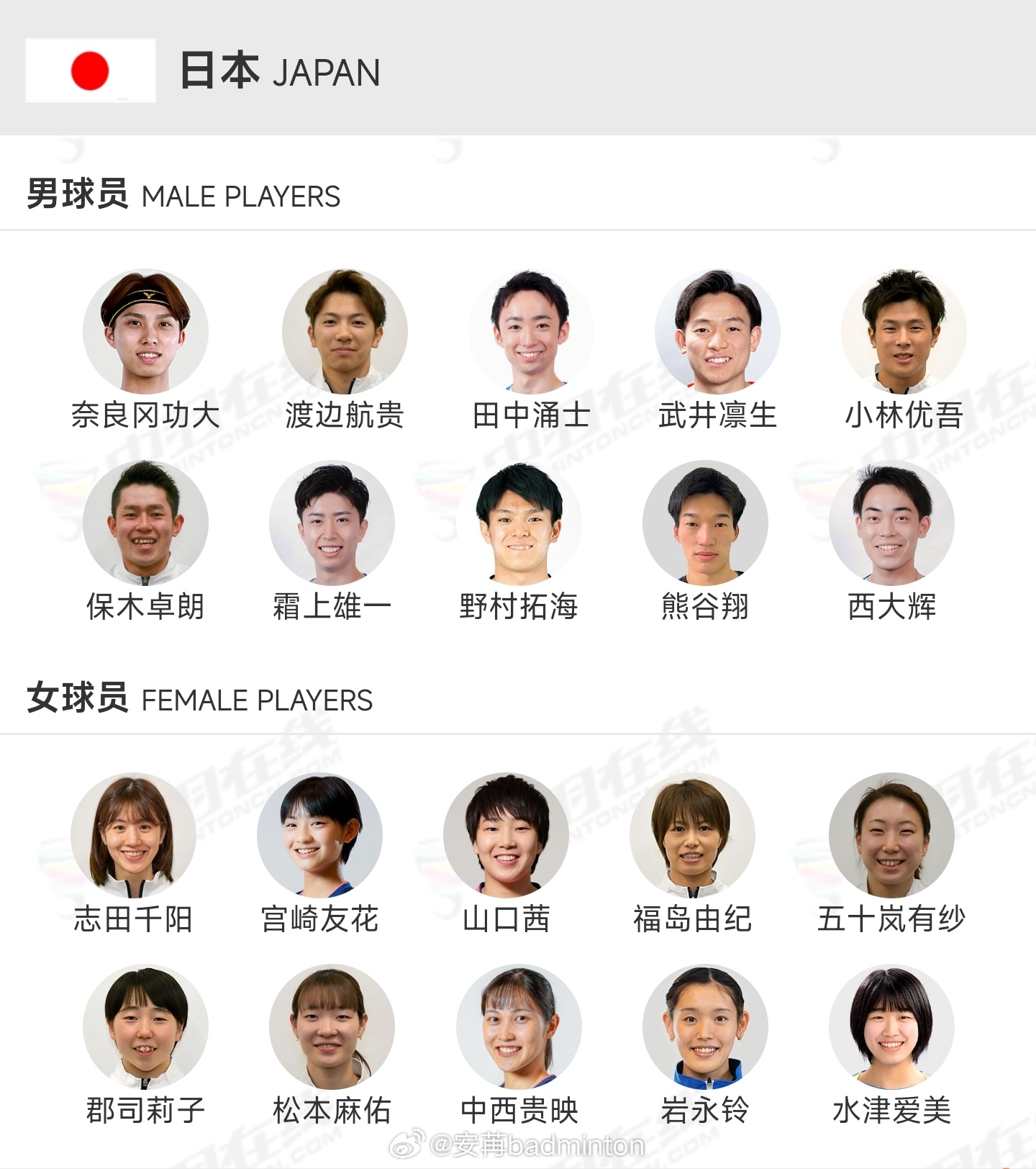 日本🇯🇵和印度🇮🇳羽协公布了2026年汤尤杯的参赛阵容