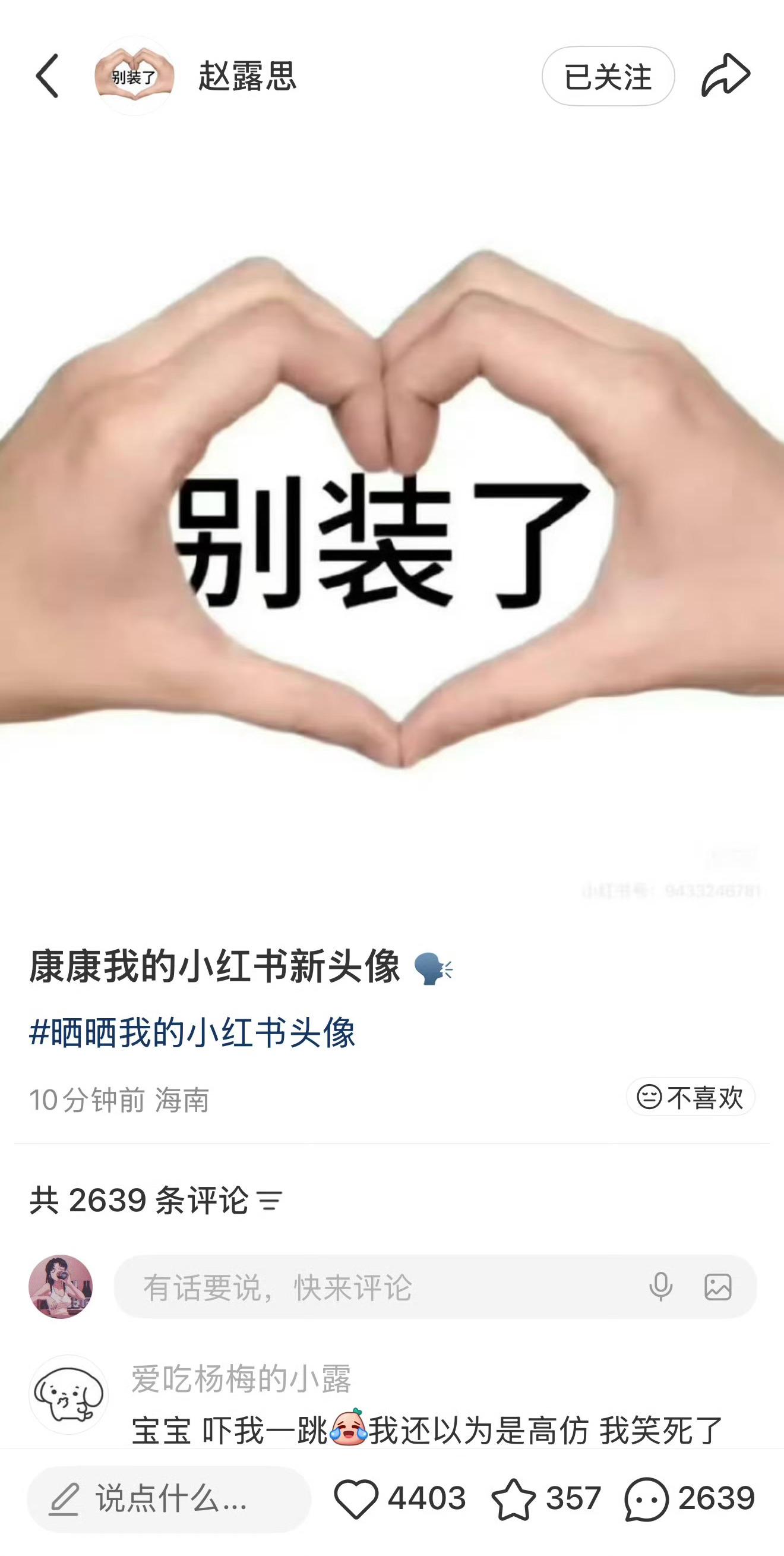 赵露思换了小🍠新头像 别装了 说谁