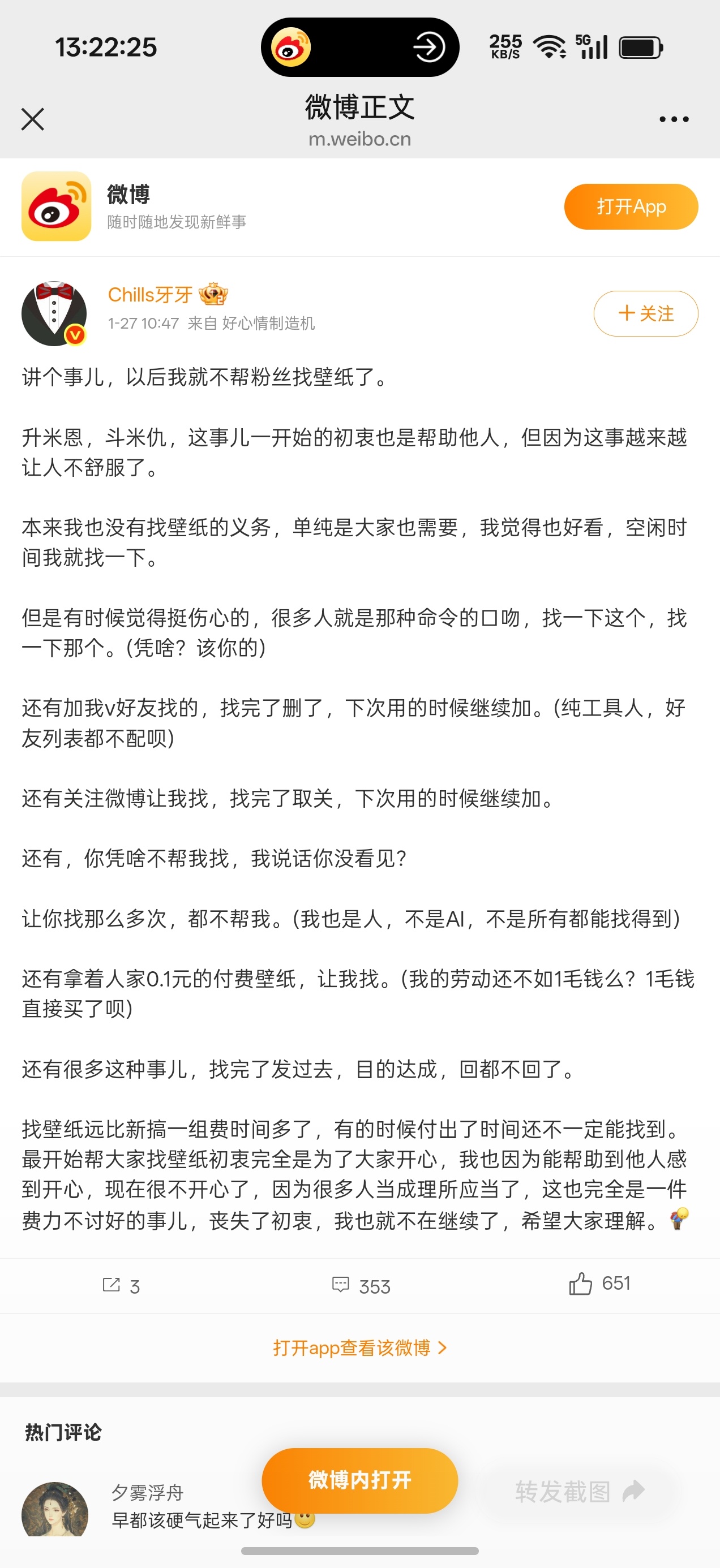 自从不帮粉丝找壁纸后整个人都舒服多了,也不会因为粉丝患得患失而不开心了。