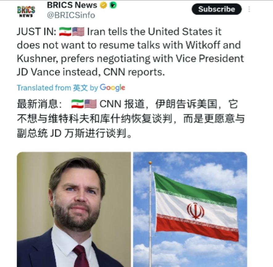 伊朗这一手非常的高明!美媒披露称,伊朗点名美国副总统万斯,把万斯列为可谈判的对象! 3月25日,根据美国CNN报道,美媒称,伊朗不愿与威特科夫、库什纳谈判,而更倾向与副总统万斯接触。当然,美媒的消息是否为真还不得而知,但是就政治微操而言,则极为精妙。 首先得说,伊朗这步棋走得简直是教科书级别的精准,直接绕过特朗普团队里的两个“硬茬”,专门挑了万斯这个角色,背后的算计细想起来让人不得不佩服。 威特科夫作为美国中东问题特使,之前跟伊朗谈过好几轮,结果刚谈完美国就发动军事打击,伊朗这边肯定记着这笔账,说他们“背信弃义”一点不冤。 至于库什纳,特朗普的女婿,典型的裙带关系上位,伊朗打心底里瞧不上这种角色,觉得跟他谈根本没分量,也谈不出什么实质性结果。 而万斯就不一样了,作为美国副总统,职位摆在这里,说话的分量和能拍板的权限,跟那两位完全不是一个量级。 更关键的是,万斯最近在伊朗问题上和特朗普有点“理念分歧”,特朗普自己都公开说过,万斯在伊朗战争方面,哲学上和他有点不同,是团队里对开战不那么热情的人。 伊朗这边肯定把这些细节摸得门儿清,挑一个相对“温和派”的对手,谈判的成功率自然能提高不少,这就跟下棋一样,专找对方棋盘上最容易突破的那个点下手。 再看谈判层级的设定,伊朗这边打算让伊斯兰议会议长卡利巴夫对阵美国副总统万斯,这层级对等得刚刚好,既不失自己的身份,又给足了美国面子,同时还避开了直接和特朗普本人打交道的尴尬。 要知道,之前伊朗一直拒绝和特朗普直接谈判,现在这么操作,相当于在不改变原则立场的前提下,给双方都留了个台阶,既维护了自己的强硬形象,又为谈判留了口子,这种分寸感的拿捏,没点政治智慧还真做不到。 更妙的是,这一招还能精准打击美国内部的分歧。最近白宫里因为伊朗问题闹得有点不愉快,万斯的“反战”立场让他和特朗普之间产生了裂痕,特朗普甚至暗示过万斯可能“失宠”,而强硬派的鲁比奥则“行情看涨”。 伊朗专门点名万斯,等于间接给万斯撑了腰,这让特朗普团队内部的矛盾更容易暴露出来。 试想一下,库什纳和威特科夫被晾在一边,心里肯定不是滋味,后续会不会给万斯的谈判制造阻力,甚至和万斯产生内斗,都是未知数,而伊朗正好可以坐山观虎斗,坐收渔翁之利。 另外,伊朗这么做也巧妙地回应了特朗普最近的“谈判秀”。3月23日特朗普突然宣称美伊进行了对话,24日又加码说伊朗已经同意永远放弃核武器,结果伊朗方面直接否认,搞得特朗普有点下不来台。 现在伊朗抛出愿意和万斯谈判的消息,等于既不承认特朗普所谓的“谈判成果”,又不彻底关上谈判大门,这种若即若离的态度,让美国方面陷入被动,反而得跟着伊朗的节奏走。 同时,这也是一种姿态的展示。伊朗通过这种方式告诉美国,不是谁都有资格和我们谈,想谈就得拿出有分量的人物和足够的诚意,之前那种出尔反尔的谈判,我们不接受。 这种强硬中带着灵活的态度,既维护了伊朗的国家尊严,又为后续谈判争取了有利的开局,不得不说,伊朗在国际政治舞台上的博弈能力,确实有两把刷子。 当然,这一切都建立在美媒消息属实的基础上,伊朗方面目前还没有对此事做出正式回应,特朗普团队也还没表态。 但不管消息真假,伊朗这波政治微操已经赚足了眼球,既展现了自己的谈判智慧,又给美国出了个难题,接下来就看美国方面怎么接招了。 如果万斯真的出面谈判,那这场博弈很可能会进入一个新的阶段;如果美国坚持让威特科夫或库什纳出面,那谈判大概率会陷入僵局,而这背后的利弊得失,美国方面恐怕得好好掂量掂量。