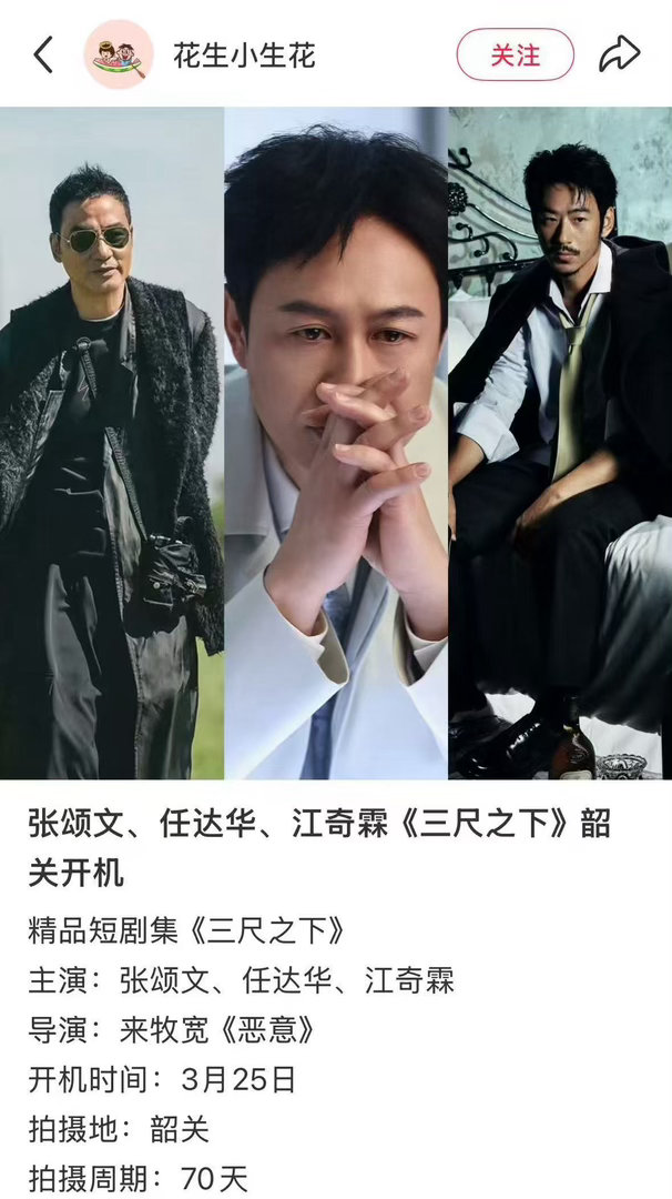 南华寺偶遇张颂文任达华江奇霖,三个实力派同框,《三尺之下》的质感已经稳了。