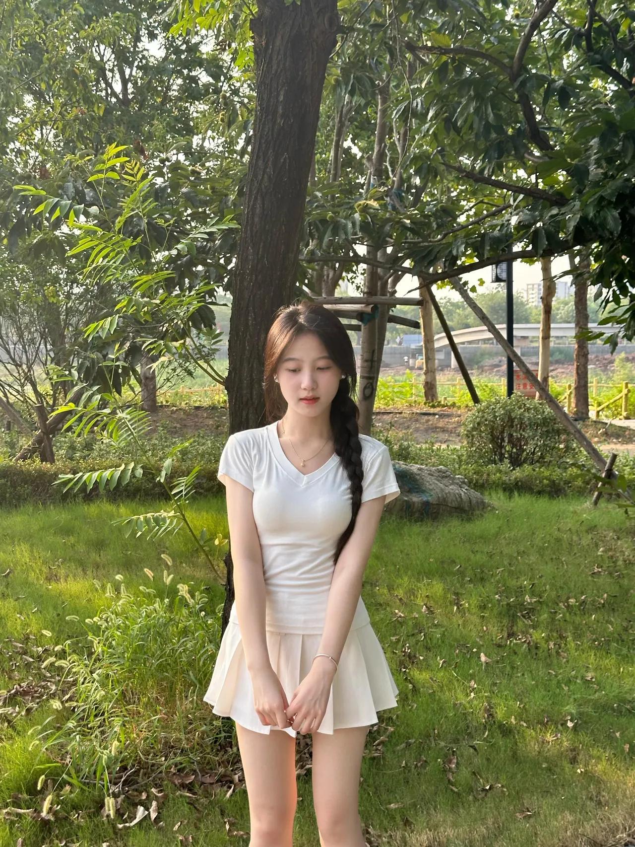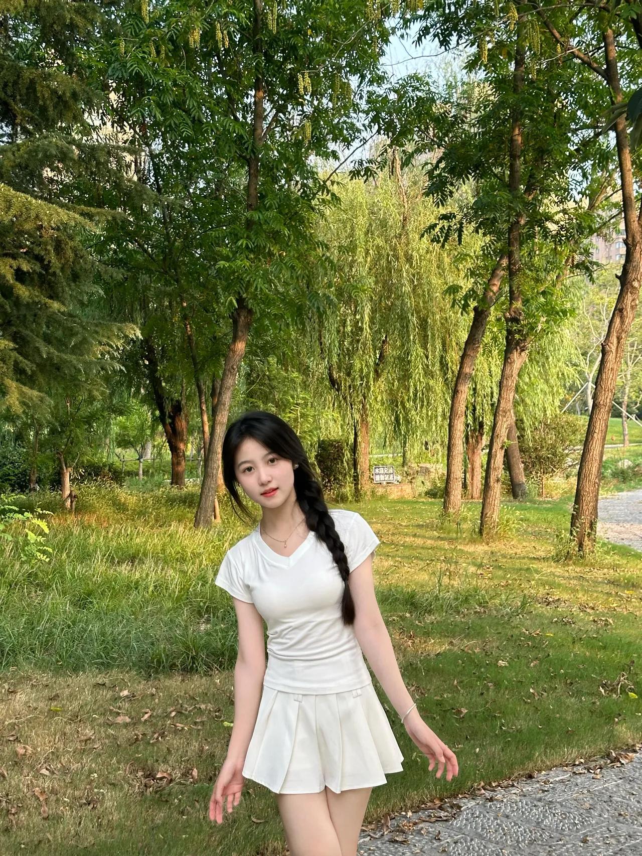 林间新绿染轻衫,素影凭风立翠烟。 一顾惊鸿凝镜里,半帘晴色落眉边。 枝摇碎日光如缕,笑靥藏春入素笺。 莫道流年容易逝,镜头留得此清妍。