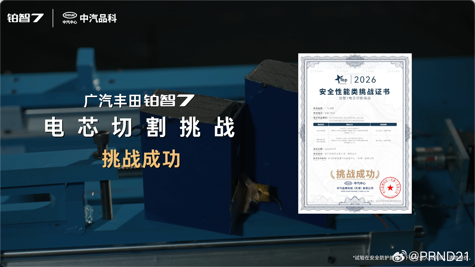 这一系列残酷挑战,就是为了体现出广汽丰田对铂智7电芯安全性、密封防护力、电源安全回馈等方面的信心——毕竟BEV这方面尤其重要。