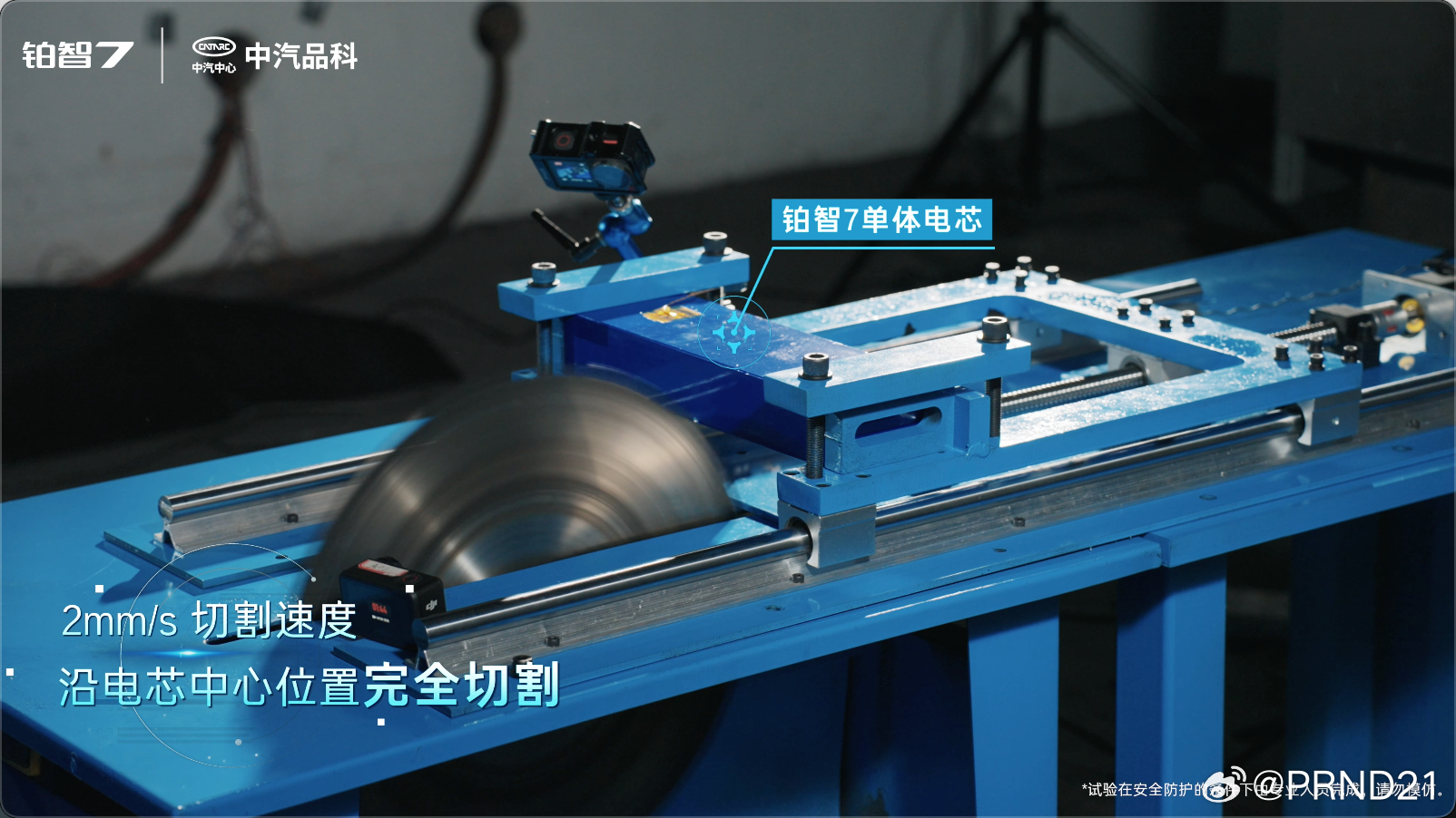 其中一项是直接切割电池电芯,而且不仅切新的,循环800次等效30万公里的“老油条电池”也要切!最终不仅当时电池无温度异常,扔那儿一天也没起火。