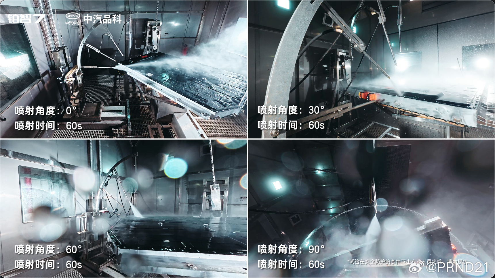 此外电池组还要被高压高温的水冲、还在腐蚀性水质中带电工作了48小时,就为了模拟车子在极端情况下涉泥水、泡污水的情况……