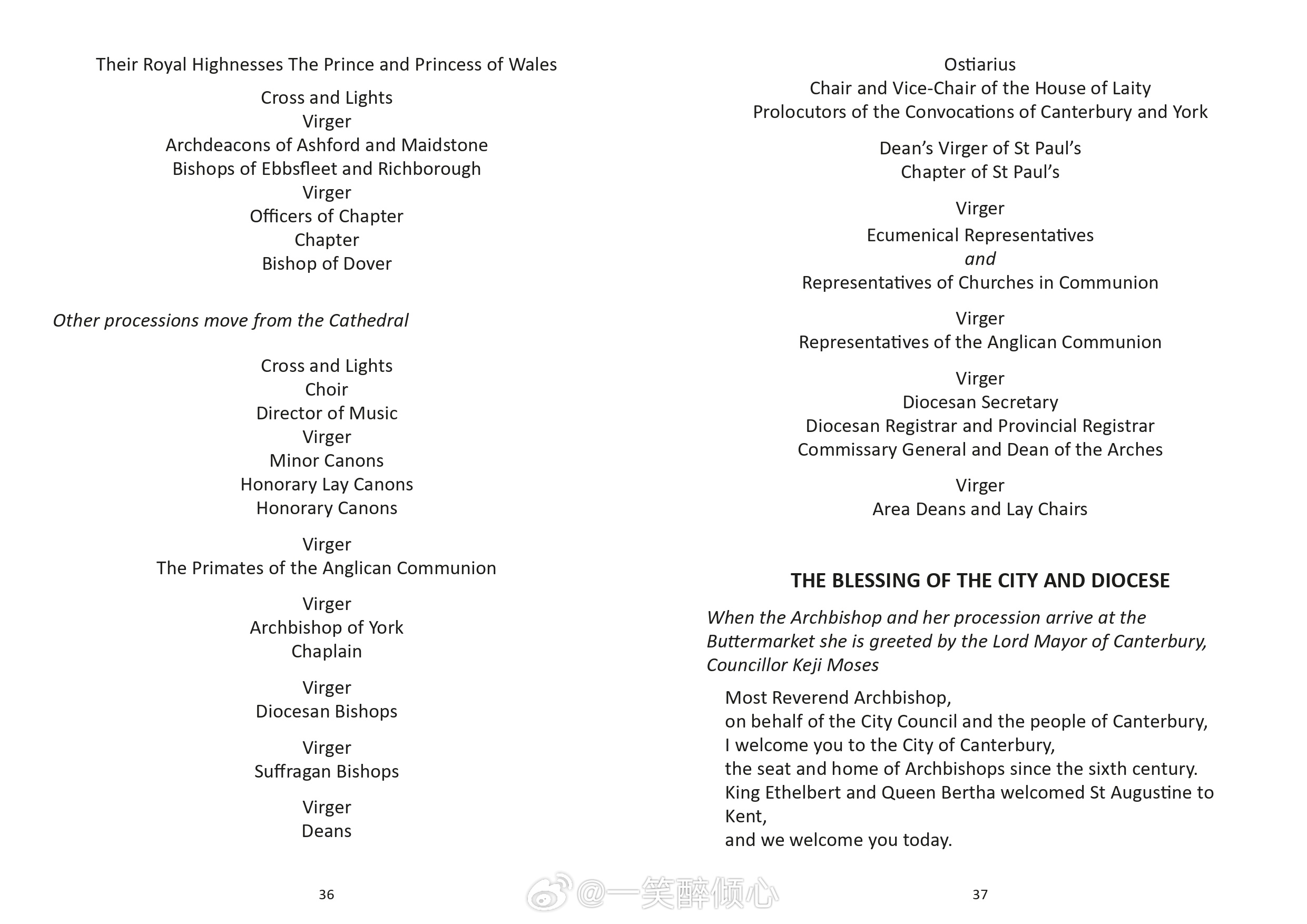 📍本次分享的是威尔士亲王夫妇有被刊登在游行名单,由于字数太多容易眼花,只分享一部分活动手册。