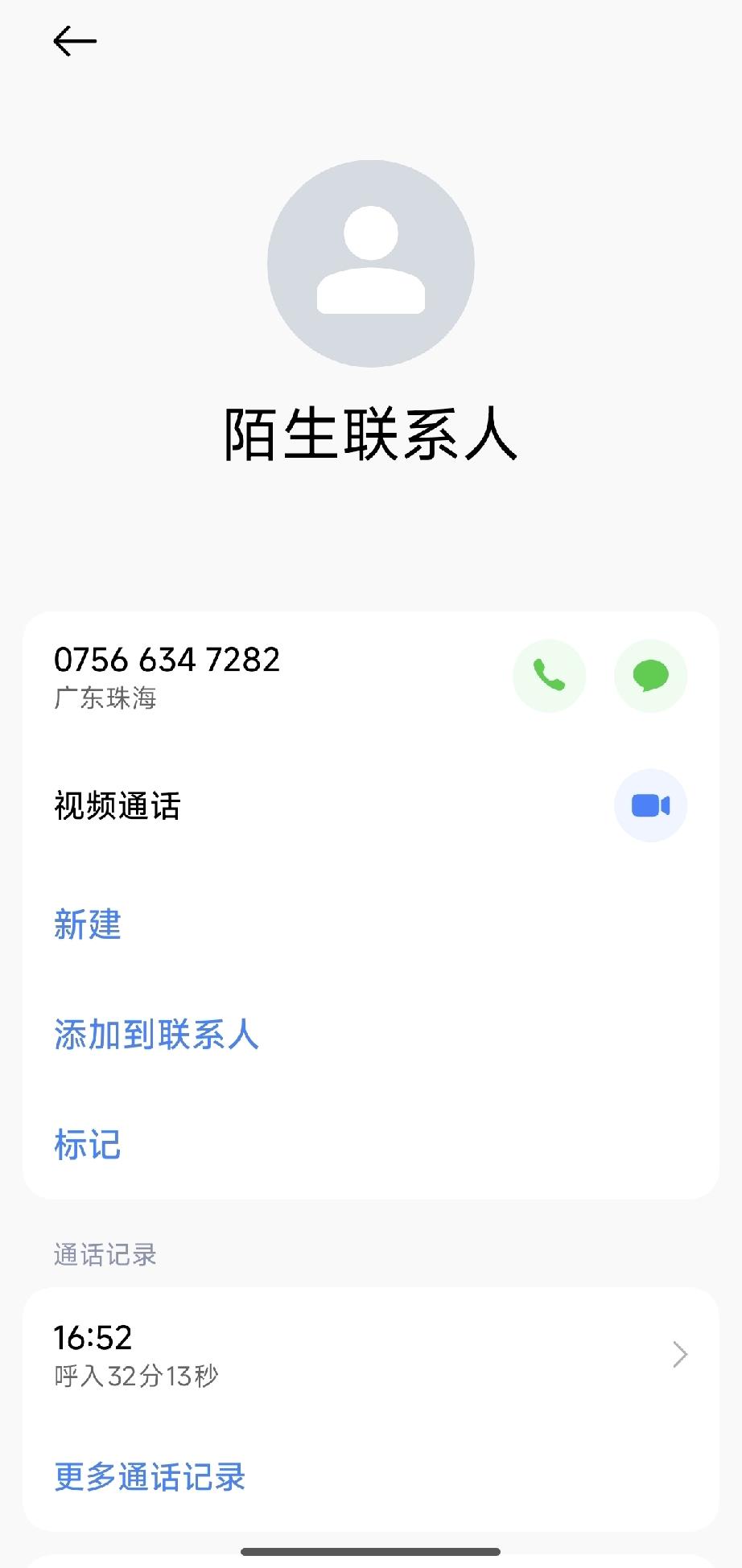 骗子用伪装的号码,自称是国家公职人员,诱导你添加微信后,让你填写信息,还一副为你着想的模样。最后,在我表示要报警时,对方立刻挂断了电话。 第一张图片上,号码伪装成珠海号码(八位数变成七位数),下面是添加微信的号码。 添加号码后(第二张图片),对方会发一个地址,指导你填写自己的身份信息,如果按他们要求,钱是怎么转出去的你都不知道。 我报警后,警察很快就赶到了,他们直接问我有没有填写信息,说这就是骗子,别理他们,直接拉黑就行,他们会汇总处理。