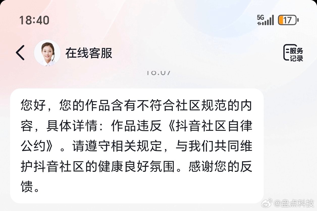 问就是违反《抖音社区自律公约》,也不说违反哪一条(主要我觉悟差,看不出来吃饭了哪条),客服训练的时候,除了这个有没有教点别的?直接不给申诉渠道,默默限制作品,这是人干的事吗?