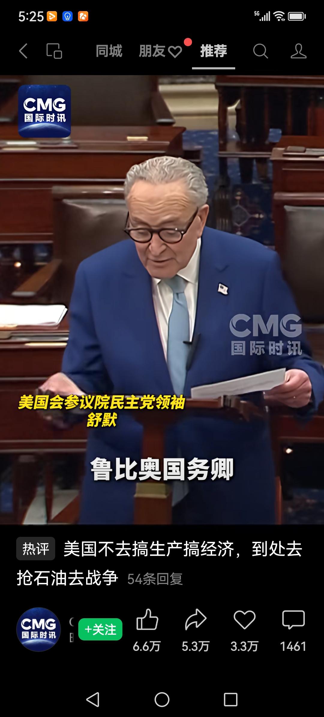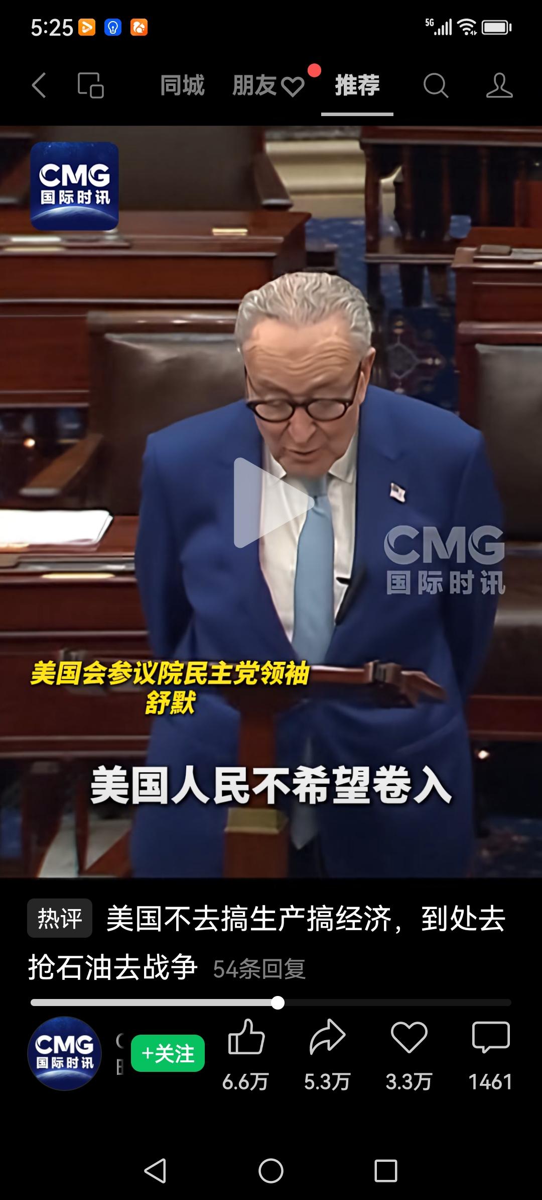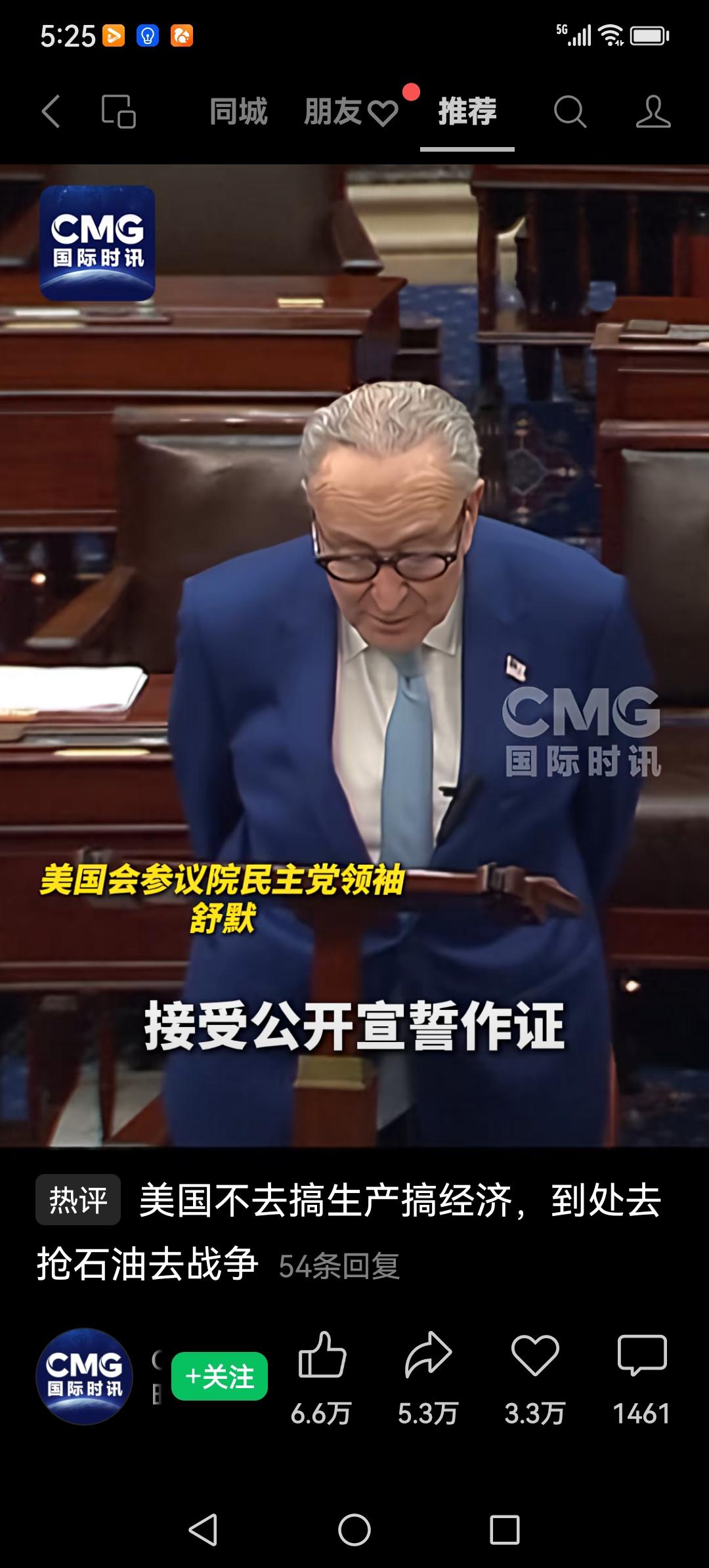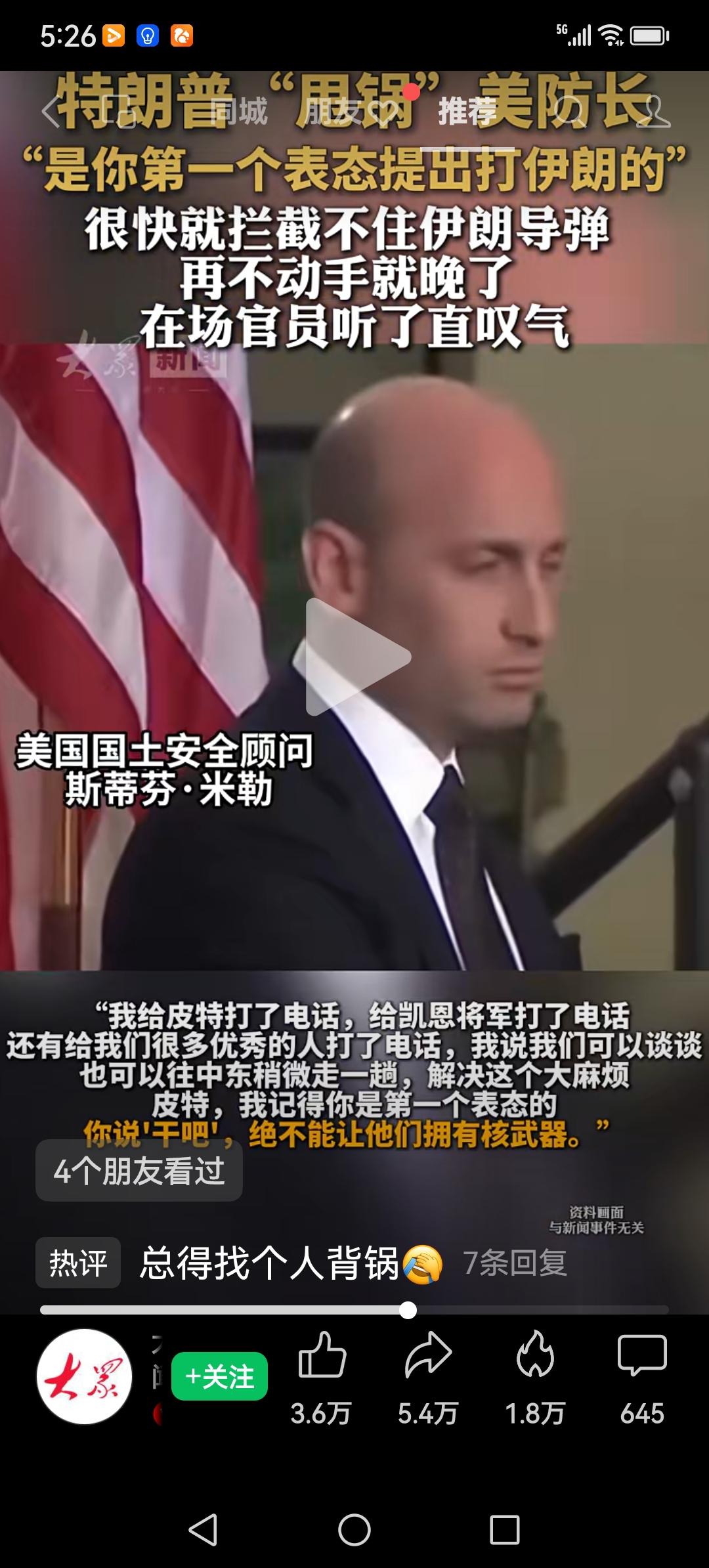 3月23日:特朗普与美国国防部长赫格塞思出席在田纳西洲举行圆桌会上,特朗普将美以与伊朗的战争的锅甩给国防部长,特朗普说,记得在动手前我给凯恩将军与许多优秀的人打电话,他们都说在同伊朗谈一谈,等等再说。但我记得是你说,“干吧”在对伊朗动手前是赫格塞思第一个说动手吧!再不动手,以后我们就拦截不住的伊朗的导弹了。 现在特朗普的压力大了,美国会参议院领袖舒默,在国会上发言说,要尽快结束同伊朗的战争,美国的经济压力太大了,物价上涨,更进一步的说,明天早上的面包都知道买得买不到?物价飞涨,确实让美国民众的情绪已经忍无可忍了,反对特朗普的声音越来越大了,再加上美国下半年两党中期选举,对特朗普的后任期不利。所以说特朗普把锅甩给国防部长赫格塞思,想摆脱对特朗普不利的局面,现在美以同伊朗的战争还高悬不下,如果特朗普罢手不战了,对美国而言已往的战无不胜的美军是一次耻辱的战绩。但不论战争下一步如何结束,美国的霸王位子是一落千丈。