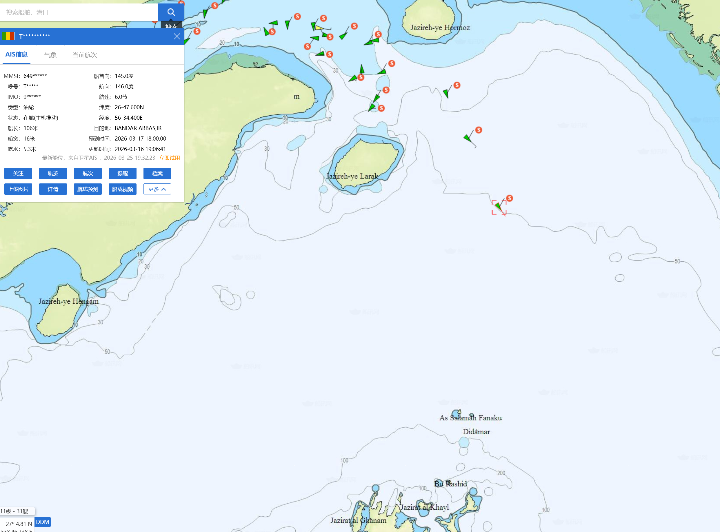 🔻为了回答上一个问题打开几个船舶信息网站截了下图。🔻发现霍尔木兹海峡的“德黑