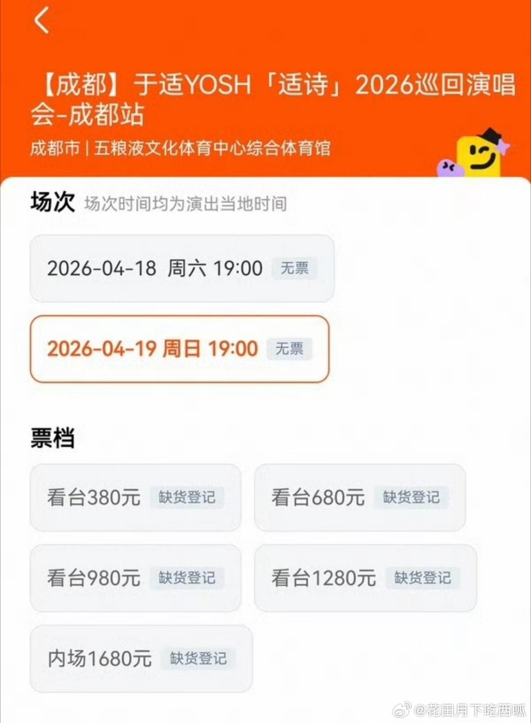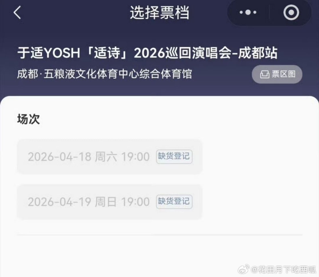 于适 成都演唱会多平台2w➕🎫都售空下架了