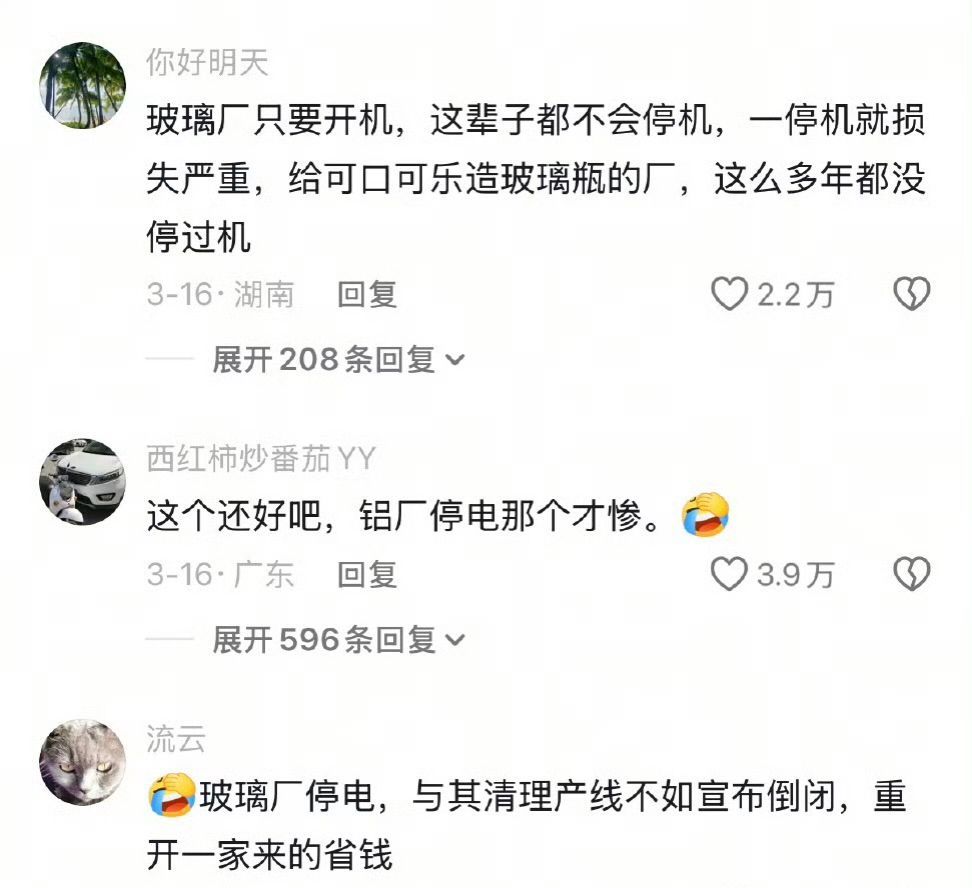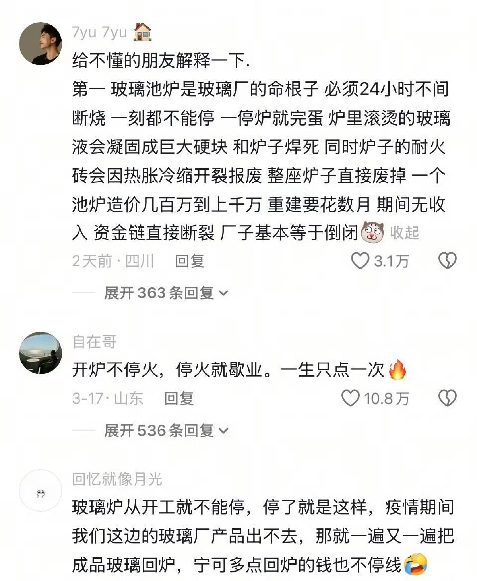 第一次知道玻璃厂不能停电一旦停机设备就废,还要赔一大笔钱。