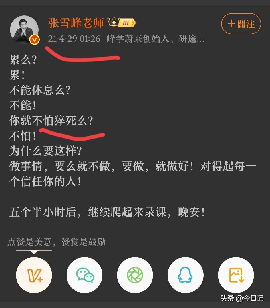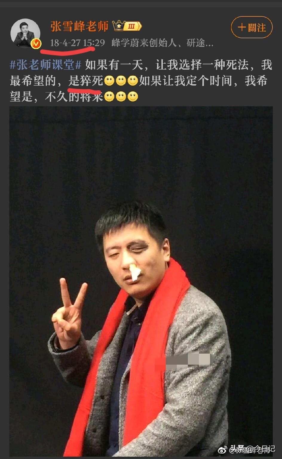 2016年就已经预言了, 张雪峰猝死自己在10年前就说了。 看来有些话真的不能随便说, 语言是有力量的。 他的猝死大概原因: 压力大, 熬夜。 正如自己所言。 没受病痛折磨, 大概是福报吧。 每天言好事, 也许不一定实现, 但会给自己力量。