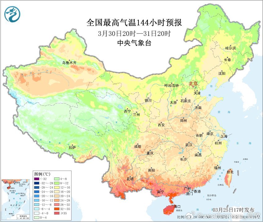 海口预计3月30日最高气温可能达到35℃,冲击今年省会城市首个高温。未来江南地区虽然降雨依然频繁,但主要是暖湿气流主导的,因此气温也不低。明天还会看到华北到华南,最高气温有高低高的夹心分布。但越往后,这样的情况就不明显了。