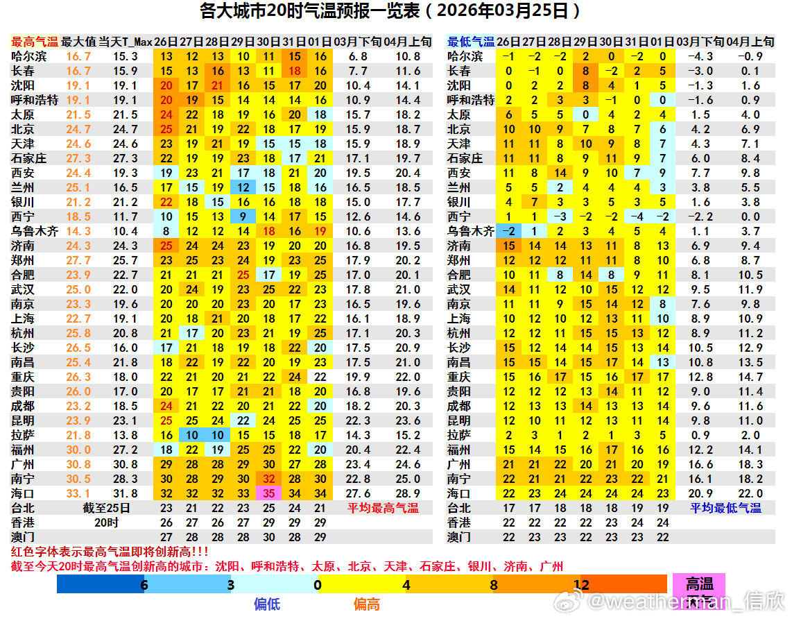明天华北黄淮气温依然处于高位,而华南地区没有冷空气影响,继续热。明天可能还有8个省会首府直辖市气温创今年新高:沈阳20℃、呼和浩特20℃、太原24℃、北京25℃、银川22℃、成都24℃、昆明25℃。之后因为冷空气和阴雨影响,华北气温可能震荡回落到正常水平附近,但东北、黄淮、华南持续偏高。