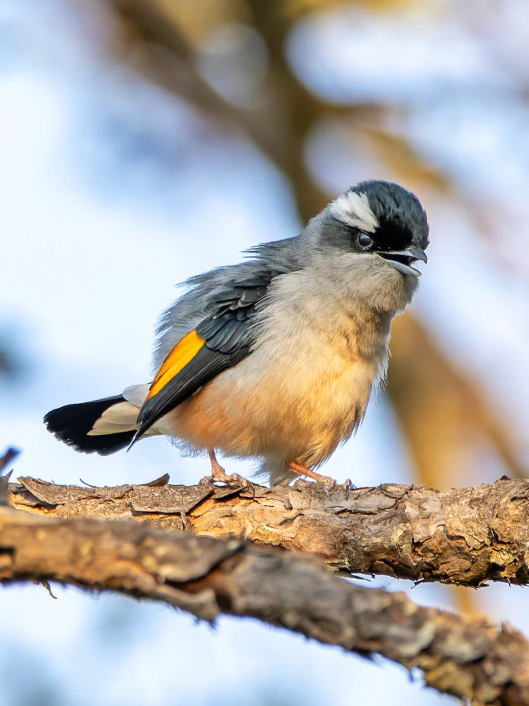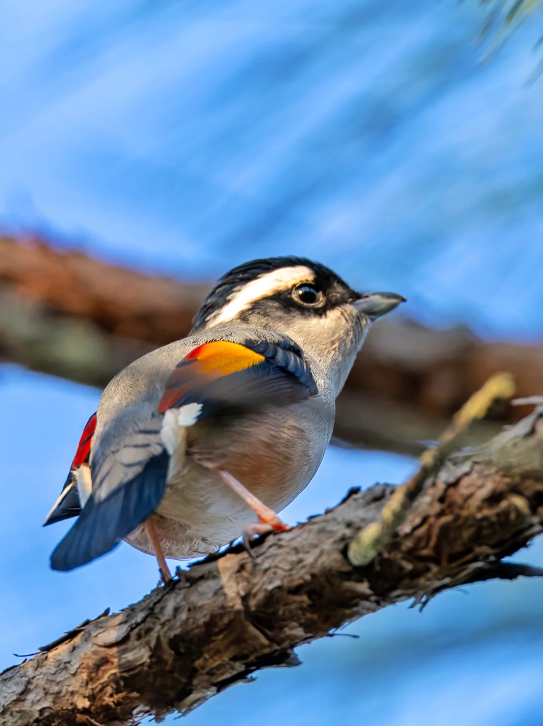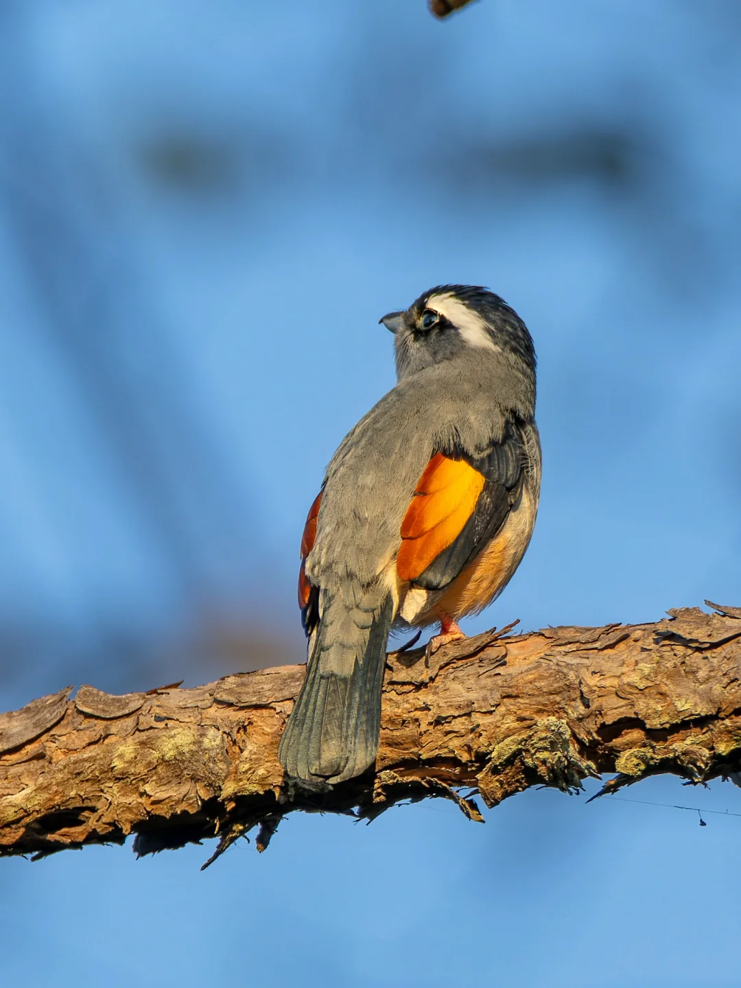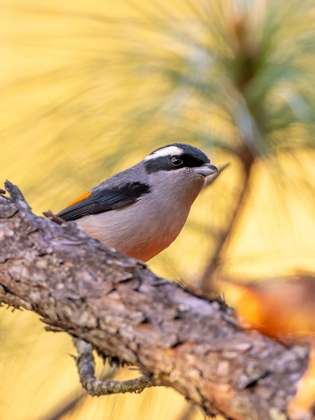 原创拍摄 红翅鵙(jú)鹛,White-browed Shrike-babbler,雀形目莺雀科鵙鹛属。分布于喜马拉雅山脉东部延伸到东南亚地区的超可爱小鸟。 红翅鵙鹛雄鸟具有醒目的白眉,翅膀有鲜艳的橙色,腹部干净白色,整个小鸟显得很强壮。 在紫溪山看到这只红翅鵙鹛宝宝,萌萌的一跳,简直萌到心化了!这小家伙毛茸茸的,站在树枝上蹦蹦跳跳,动作灵活又可爱。