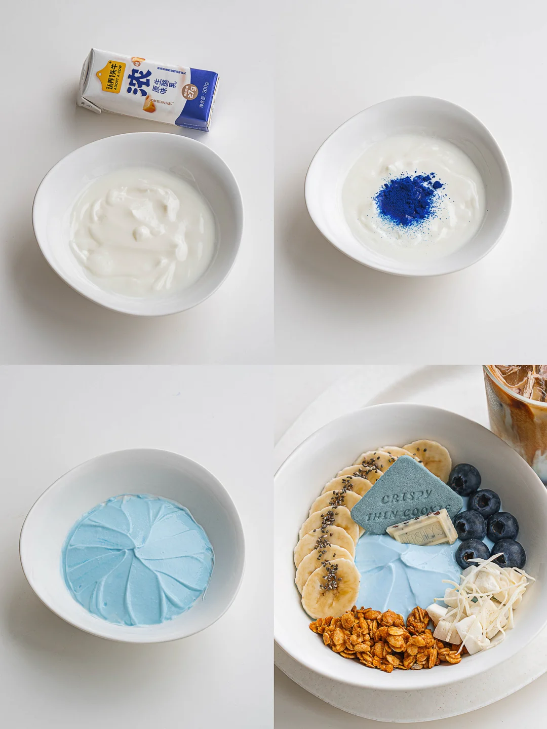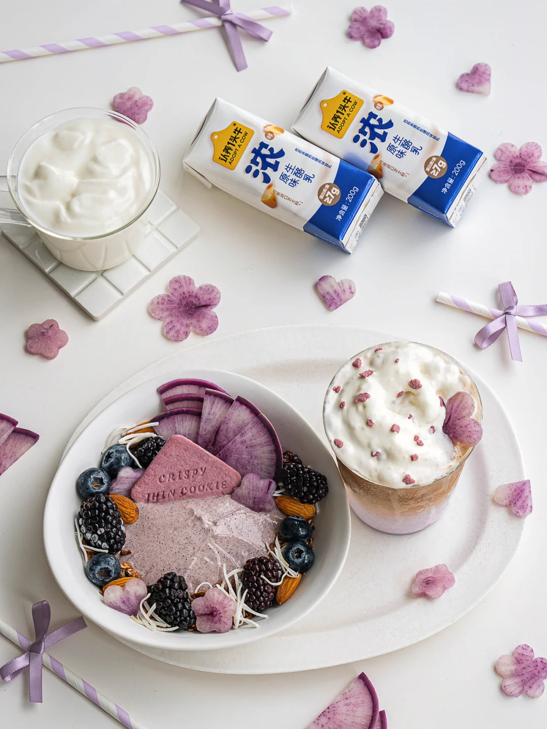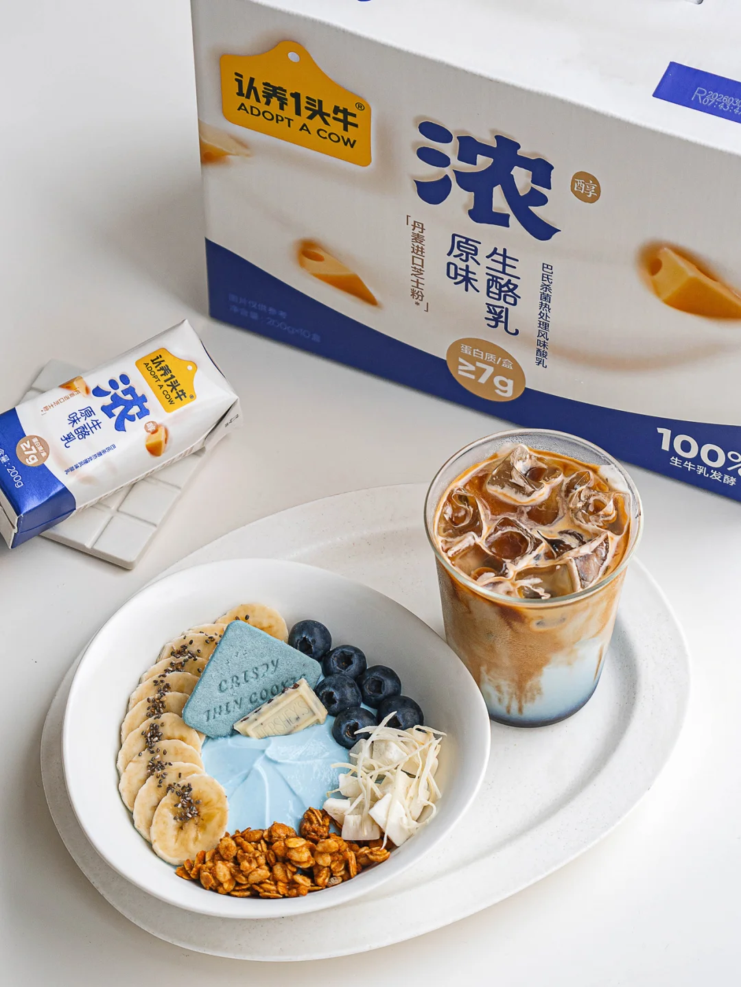 ❶芭乐草莓酸奶碗+樱花雪顶拿铁 ❷巴西莓莓果酸奶碗+紫薯雪顶拿铁 ❸藻蓝蛋白酸奶碗+蓝咖啡 ❹黑芝麻酸奶碗+黑芝麻拿铁 - 用奶香浓郁的酸奶碗 和层次丰富的雪顶拿铁搭配 开启这个缤纷的春天吧 每一款都美味颜值双重在线 眼睛和嘴巴都一起美上啦 🌸芭乐草莓酸奶碗: 浓酸奶+可可麦片+红心芭乐+草莓+椰子片+椰丝+草莓粒+饼干 💜巴西莓莓果酸奶碗: 浓酸奶+巴西莓粉+可可麦片+巴旦木+水果萝卜+黑树莓+蓝莓+椰丝+饼干 🫐藻蓝蛋白酸奶碗: 浓酸奶+藻蓝蛋白粉+香蕉+麦片+椰子块+椰丝+蓝莓+饼干+白巧+奇亚籽 🖤黑芝麻酸奶碗: 浓酸奶+可可麦片+巴旦木+黑树莓+蓝莓+火龙果+可丽饼+白巧+黑芝麻酱 - 全面升级的认养一头牛浓酸奶 也太懂女生的喜好了 一瓶的蛋白质含量 就相当于一颗鸡蛋的蛋白质的含量 妥妥酸奶里的“能量士力架” 好喝又顶饱,来不及吃早餐或下午饿了 都可以随时来上一瓶 里面加了足量丹麦进口干酪 一打开盖子就是扑面而来的纯正浓醇奶香 闻着就觉得治愈又满足 100%新鲜生牛乳发酵 发酵时长足足是普通酸奶的1.5倍 质地浓厚顺滑,像冰淇淋一样细腻柔润 入口即化,每一口都让人沦陷 好喝、营养、有质感 真的要狠狠夸夸自己的吃商! 除了直接空口吃 我更爱用它DIY各种酸奶碗 搭配水果、燕麦、巧克力解锁多种口味 直接囤了好几箱 宅家实现酸奶碗自由 幸福感稳稳拿捏~