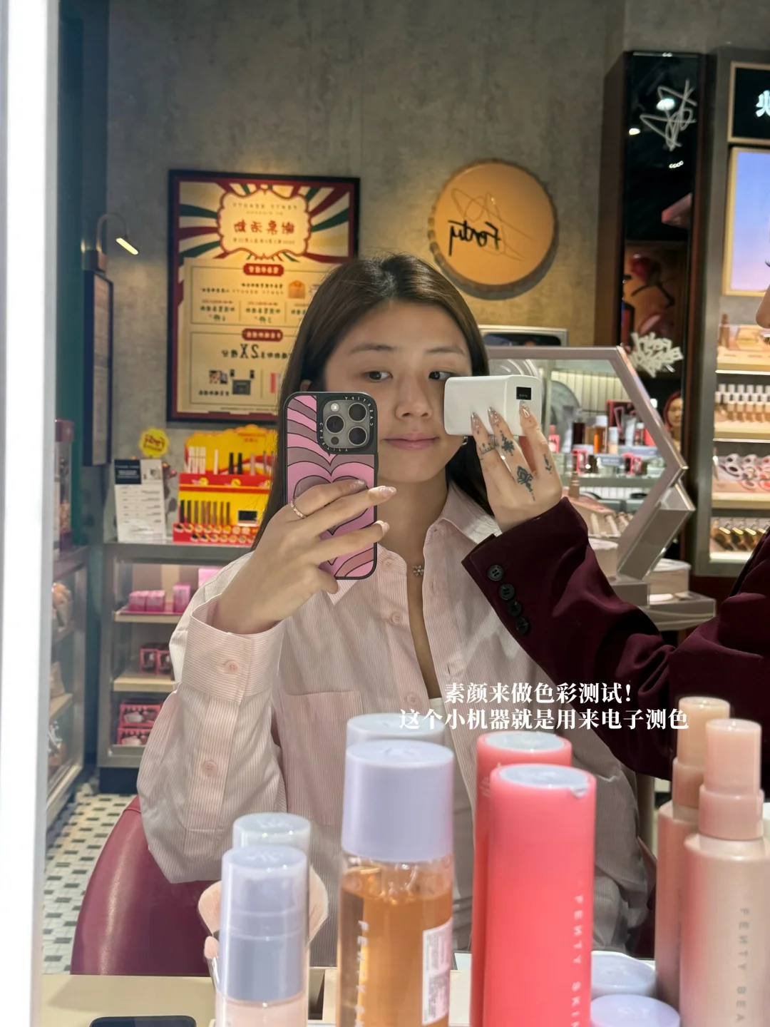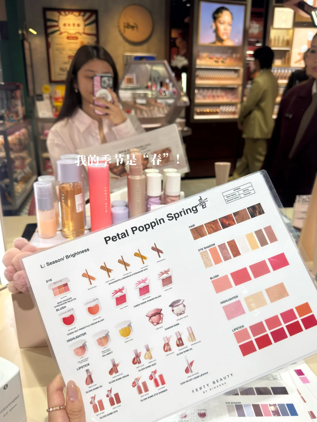 没想到第一次做色彩测试不在韩国哈哈 其实想做很久了! 偶然发现香港的Fenty Beauty居然有机器可以测 美美地做了一下并种草了好几款化妆品💄 好喜欢它们新款粉底液 光泽感很棒!