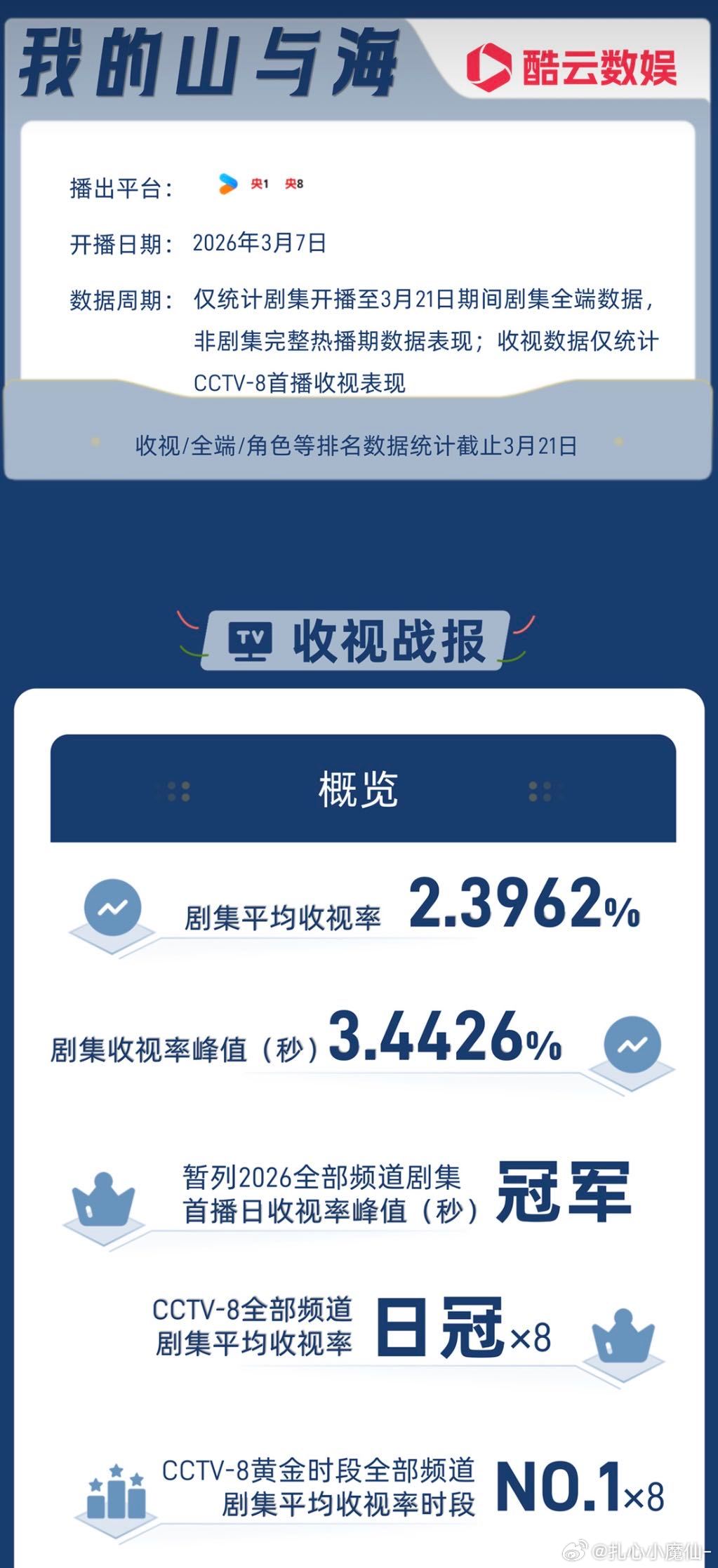 谭松韵《我的山与海》CVB平均收视2.226%拿下央8收视暂年冠也是2026年央8首部cvb破2%的剧集谭松韵这观众底盘和观众缘真不是盖的