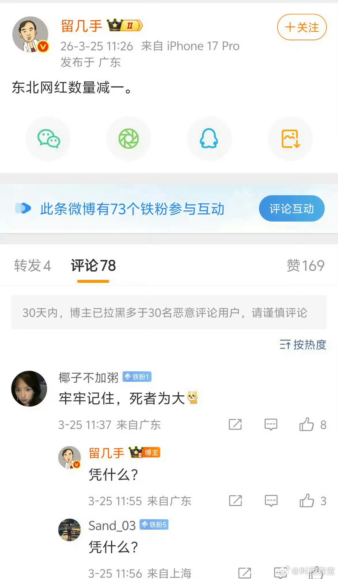 留几手这种人就是属于癞蛤蟆趴脚背上不咬人它膈应人,真的是给东北人丢脸啊,咱就是说能把这种人的号给封了嘛?留几手