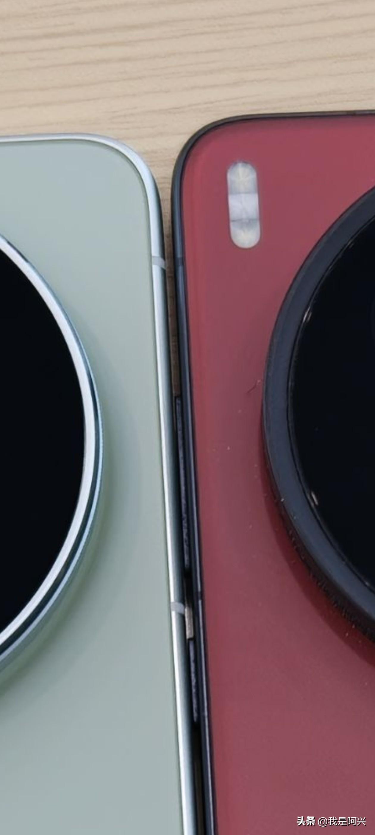 我前面就说上代Ultra底部积灰的问题,这活脱脱就是现实的例子。 所以这代火山口过渡设计除了带来更好的手感外,还能解决上代积灰的问题。 还有就是这代影像更强大了,而Deco反而没有上代看上去大和凸的一个原因就是火山口视觉降低了一部分凸起,而且减薄镜头包边金属圈以后,看上去镜头Deco还没有上代大,最关键看上去清爽了很多。 还有中框设计的区别,这个我前面也说过了,四曲包边可以把拼接过渡到后盖处,这样让手感和一体感更强,上代就是传统的中框设计。