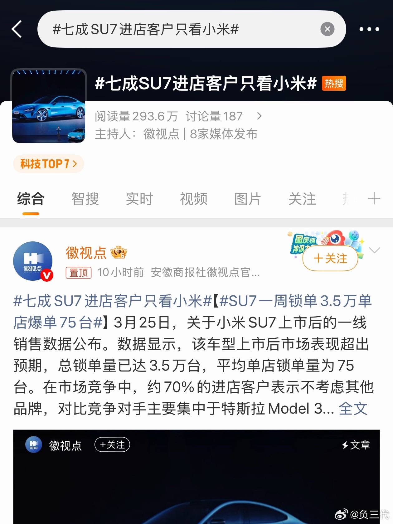 两个话题连在一起看,米粉的购买力和SU7的产品力都毋庸置疑了。根本不考虑其他的车