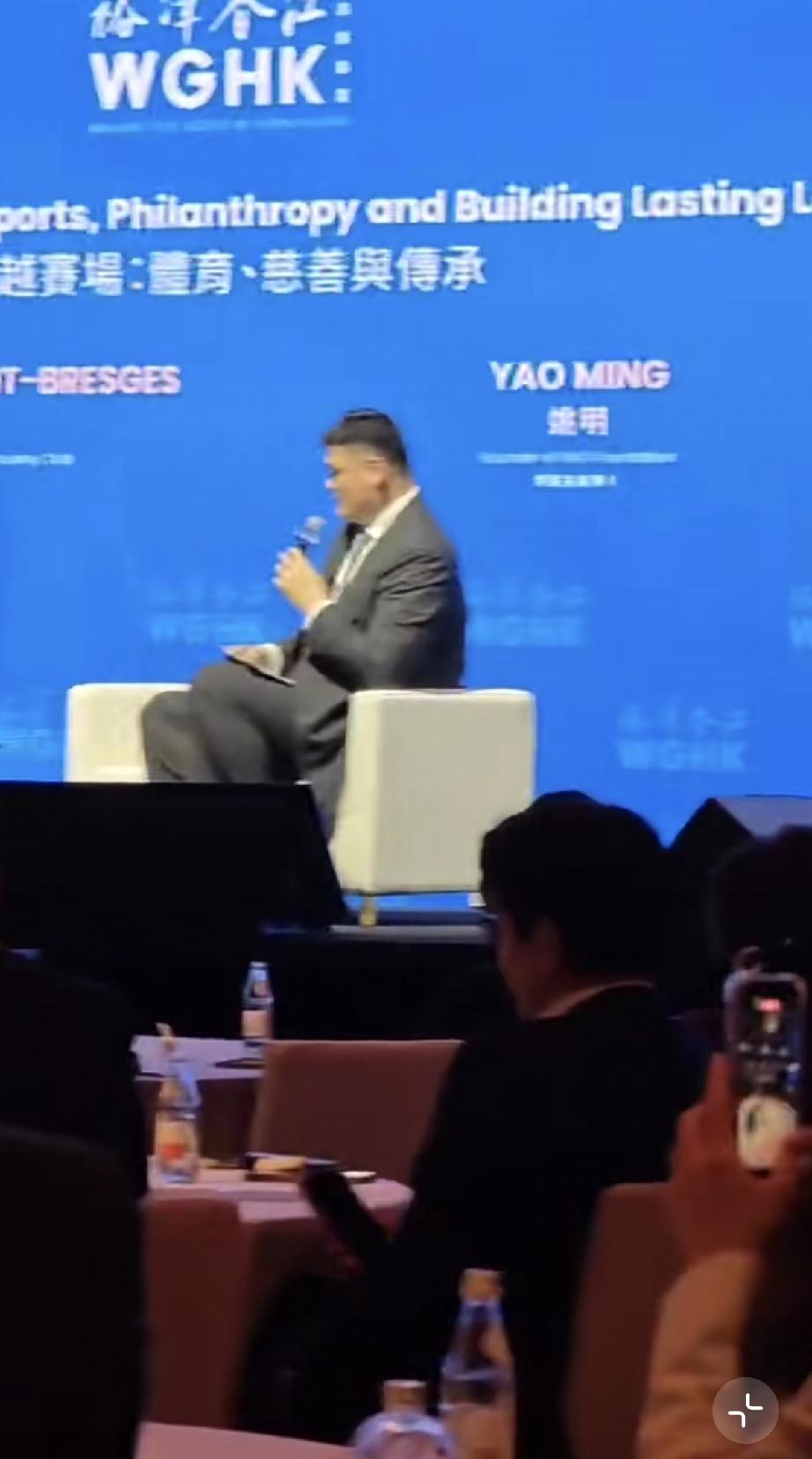姚明胖成这样,裤子快崩开了,再不减肥要出问题了! 3月25日,姚明参加活动,跟老外在台上流利地用英语交流,让人刮目相看,以为他只是体育天才,英语不怎么样,毕竟没时间学文化课,没想到他英语还挺好的,不输专业人士。 姚明是上海交通大学的本科生,好歹也是个本科学历,而且在外国打球很多年,认真学一下英语是没问题的,说明他脑子不笨,智商挺高的,也好好学英语了。 不过,姚明的身材简直不敢恭维,实在是太胖了,他自从退役以后是一年比一年胖,身材已经完全失控。 以前说他2米26的身高,体重280斤,但现在看根本不止,感觉要超过400斤了。 他这次穿了一身西装,从侧面看胖得要命,大腿太粗了,本来裤子就宽,他还把裤子撑得那么圆,裤子也快被撑破了,隔老远都能看到裤子绷得很得紧。 而他的脸更是胖到不行,脸上肉多,没有轮廓,下巴上翘,他坐在椅子上挺吃力的,原因是太胖了,体型巨大,椅子比较小,坐着不舒服。 姚明今年46岁了,也是到了该注意身体的时刻了,想要身体健康,首先不能太胖了,他的身材如果再不控制,肯定会出问题的。
