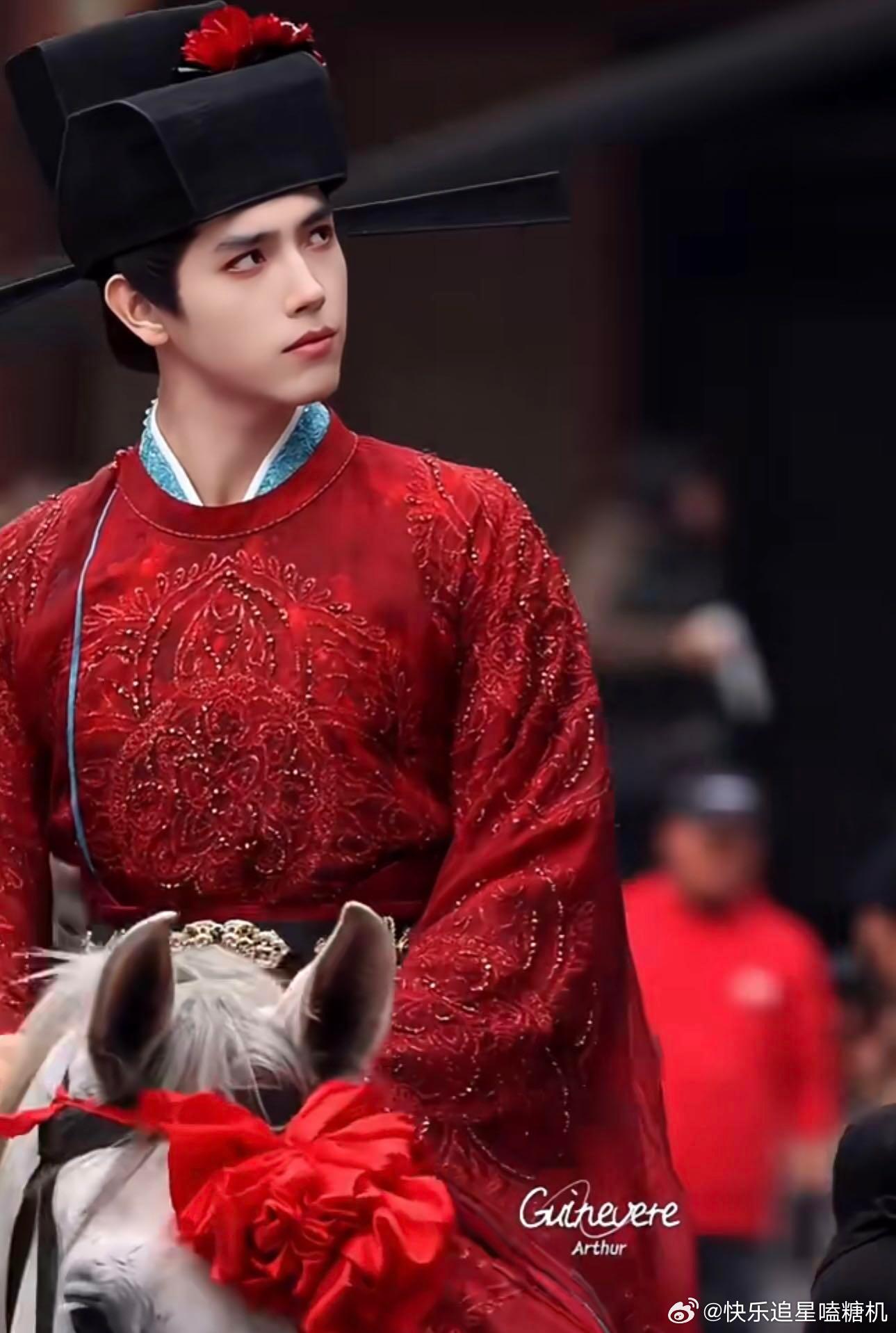 陈飞宇白日提灯新郎官造型 一身正红婚服挺拔如松,眉眼清隽少年气拉满,既有少年将军