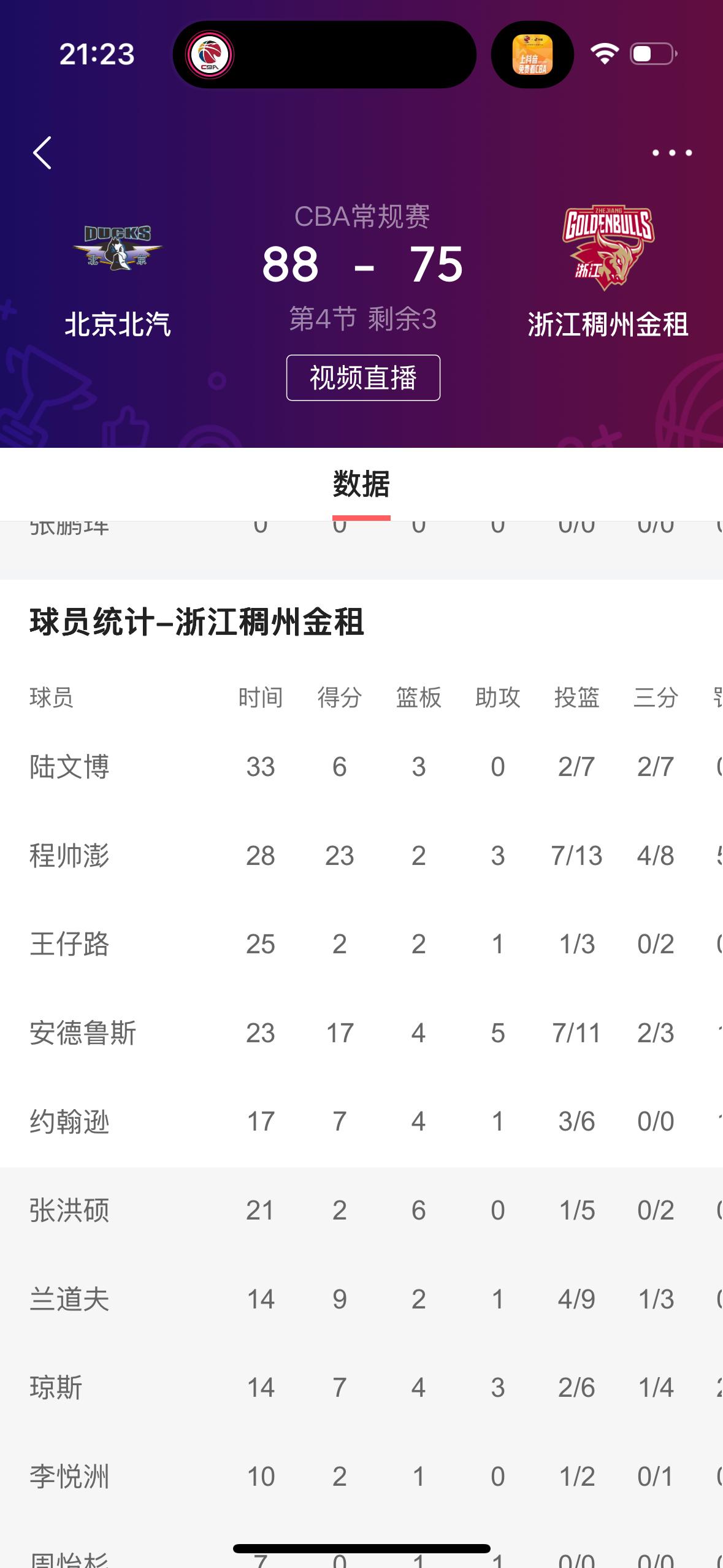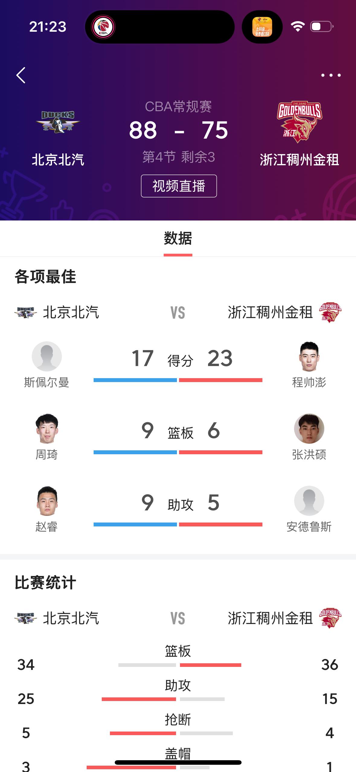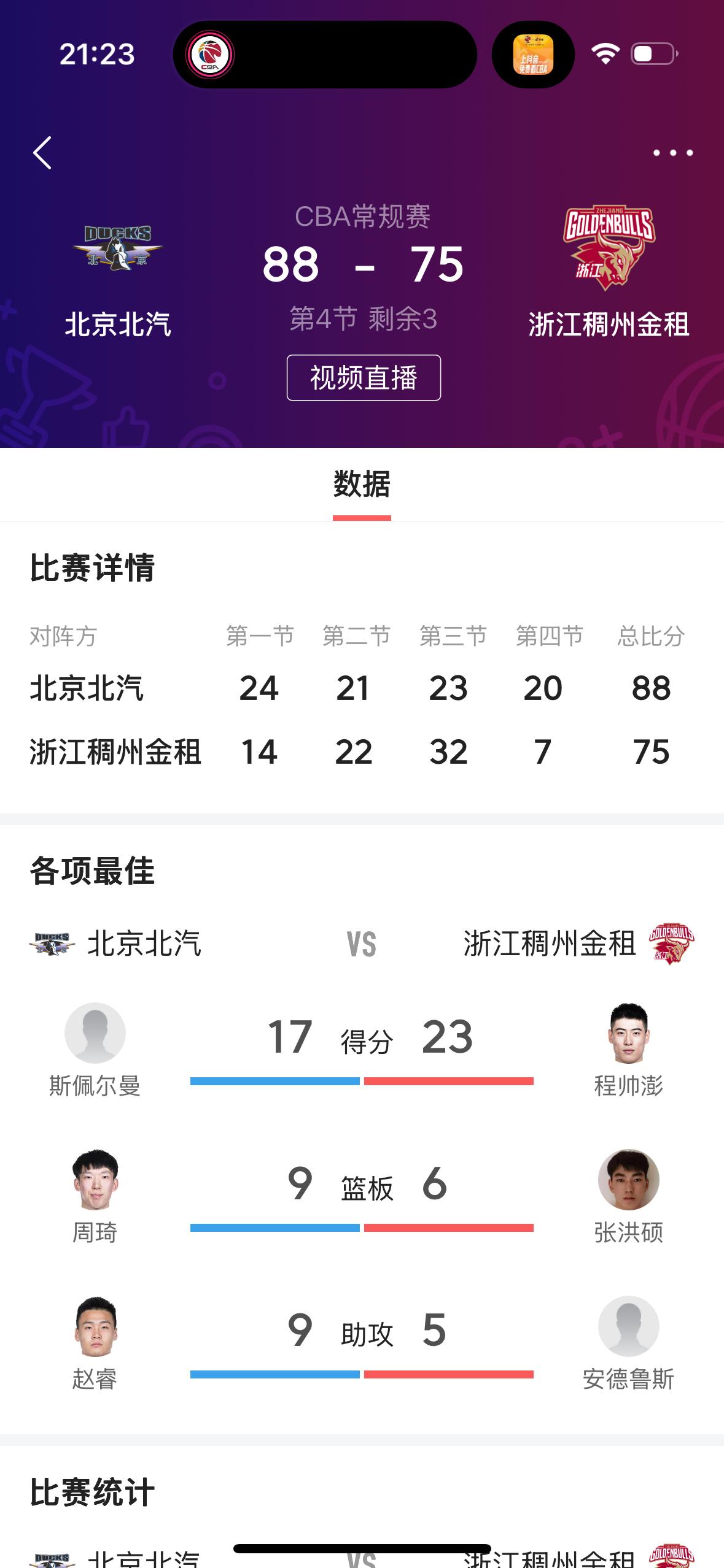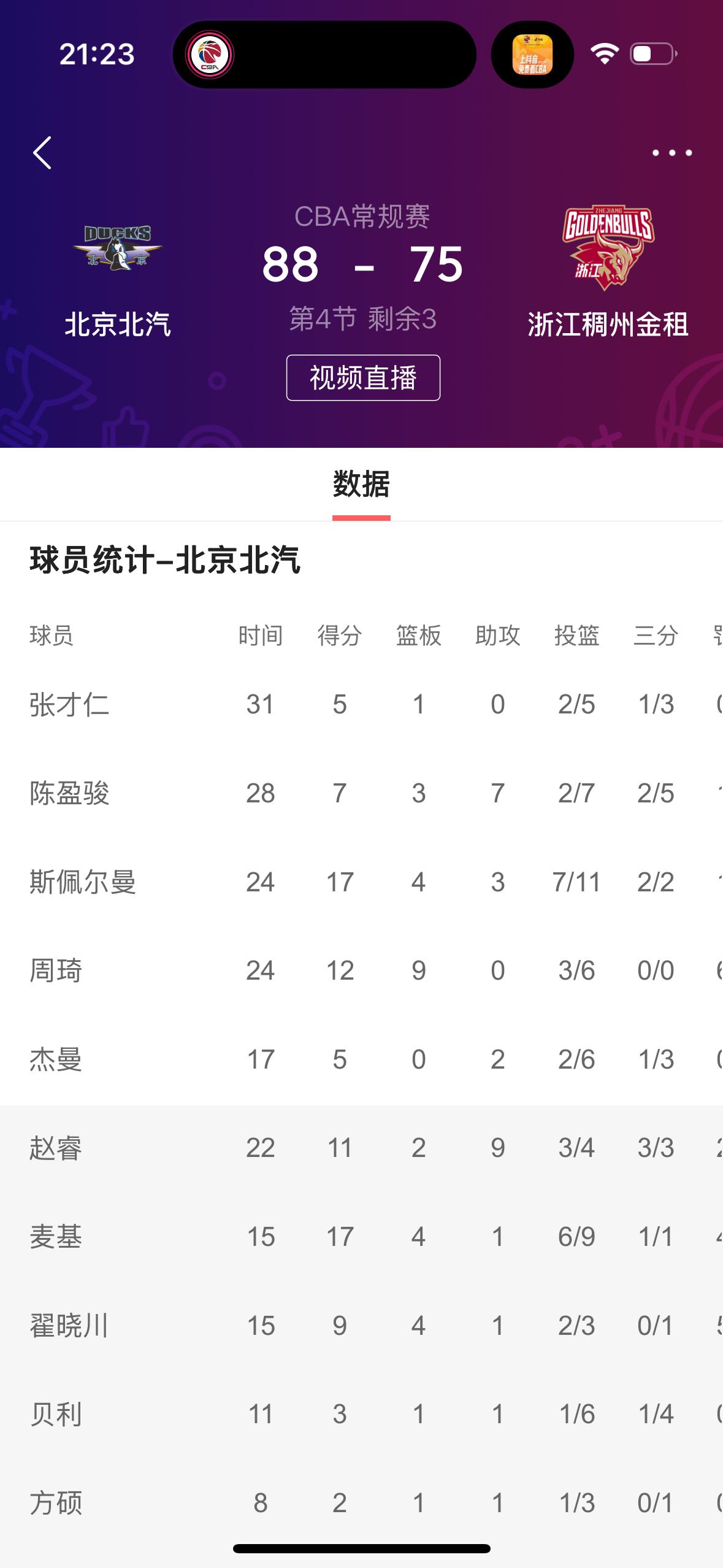 我预测正确,北京北汽男篮主场取得胜利✌️! 在刚刚结束的北京北汽男篮主场迎战浙江稠州金租男篮的比赛中,最终北京队以88比75取得了胜利✌️! 纵观全场比赛,北京队四名球员得分上双,尤其是在第四节比赛,打了一个20比7,最终获得了胜利。反观浙江队,主要就是输在了第四节比赛,程帅鹏、安德鲁斯表现出色,得分上双。 恭喜北京北汽男篮主场获得胜利✌️!