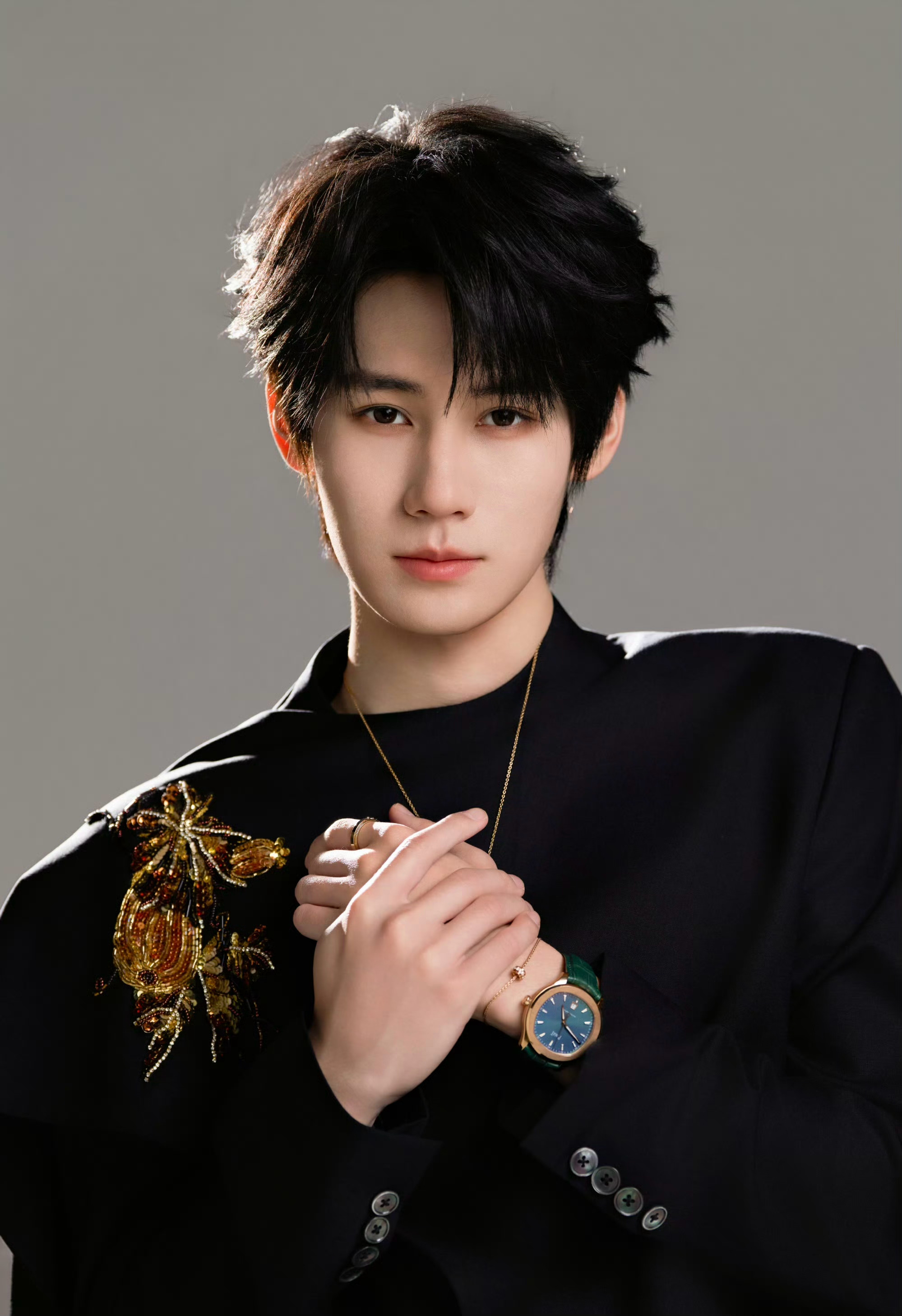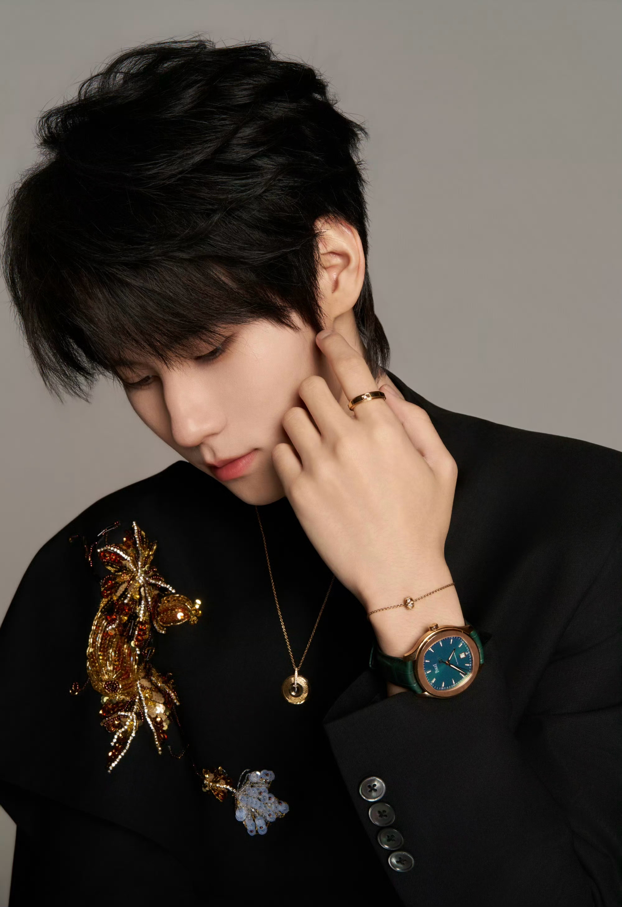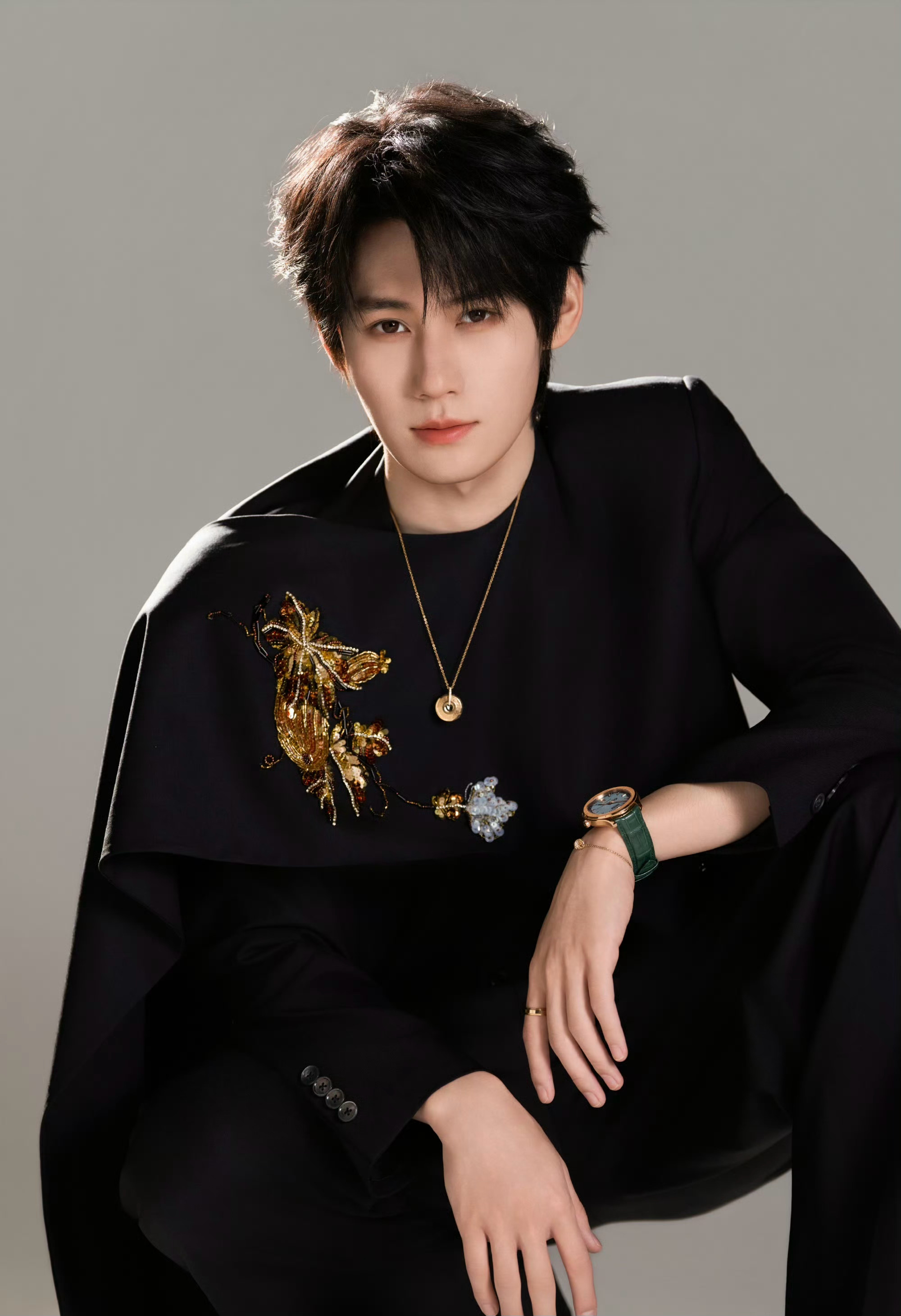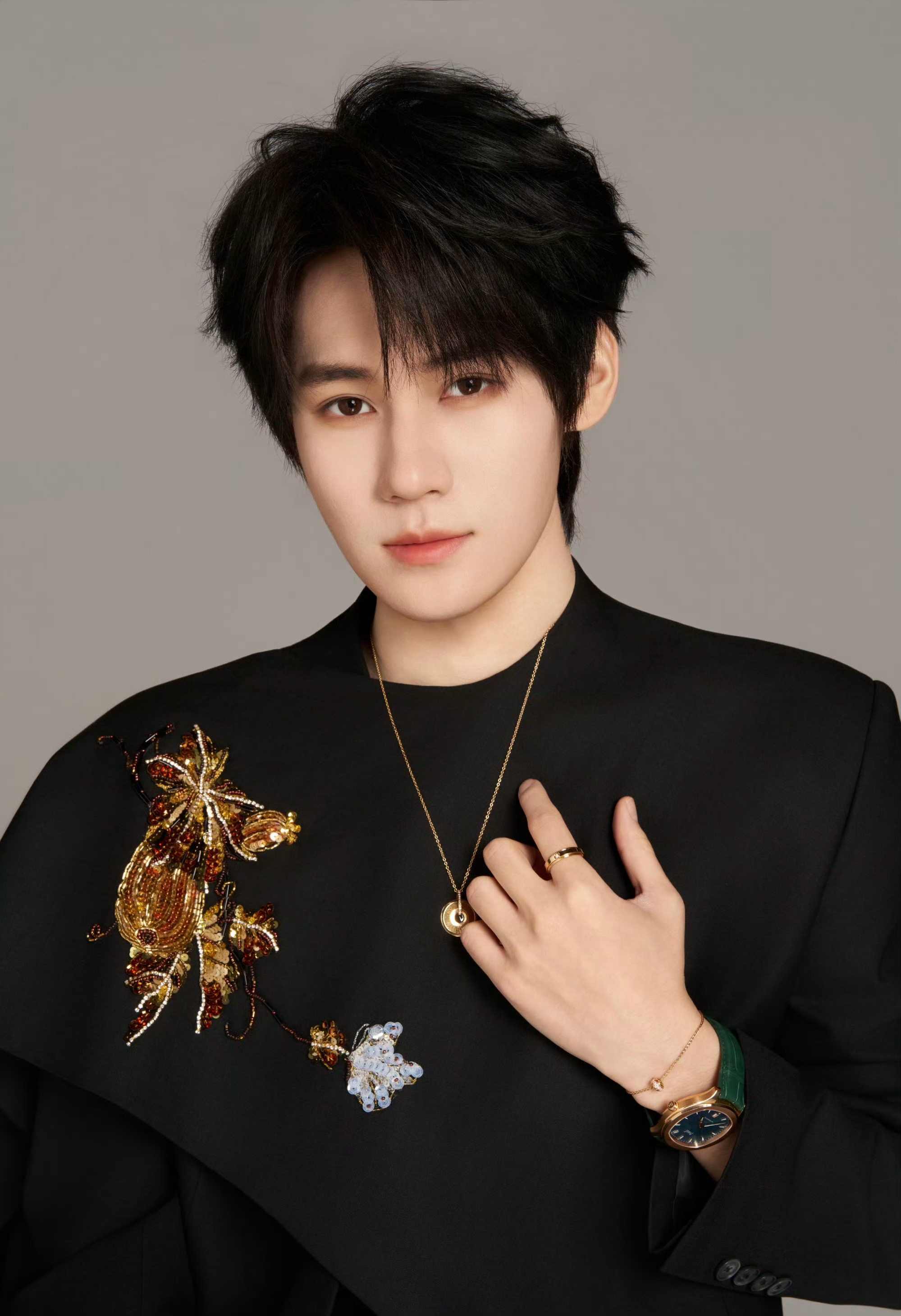 张真源 in PIAGET⌚️💎✨ 中式珠片刺绣套装,搭配伯爵珠宝及腕表,俊逸