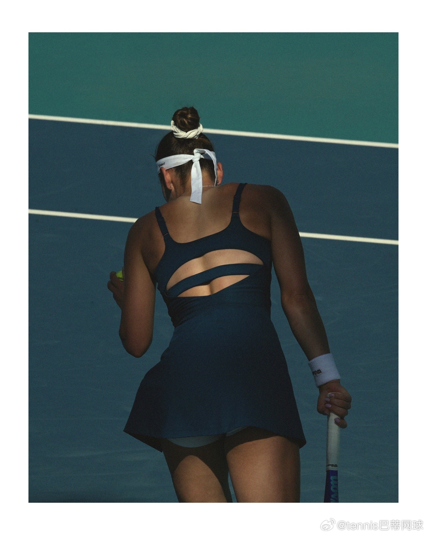 科斯秋克为Wilson代言V领剪裁连衣裙,亮白色底线网球短裤,Ultra V5在