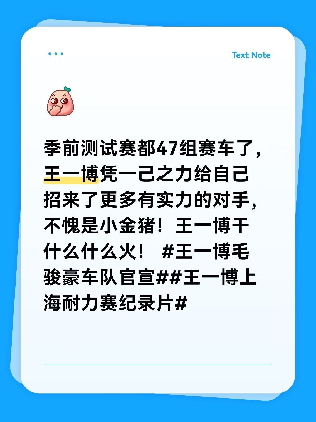 王一博助力中国汽车运动破圈———今年cgt季前测试赛有47组……以一己之力给自己增加了很多对手第一次参加赛车的时候才8组 真的发展越来越好了~