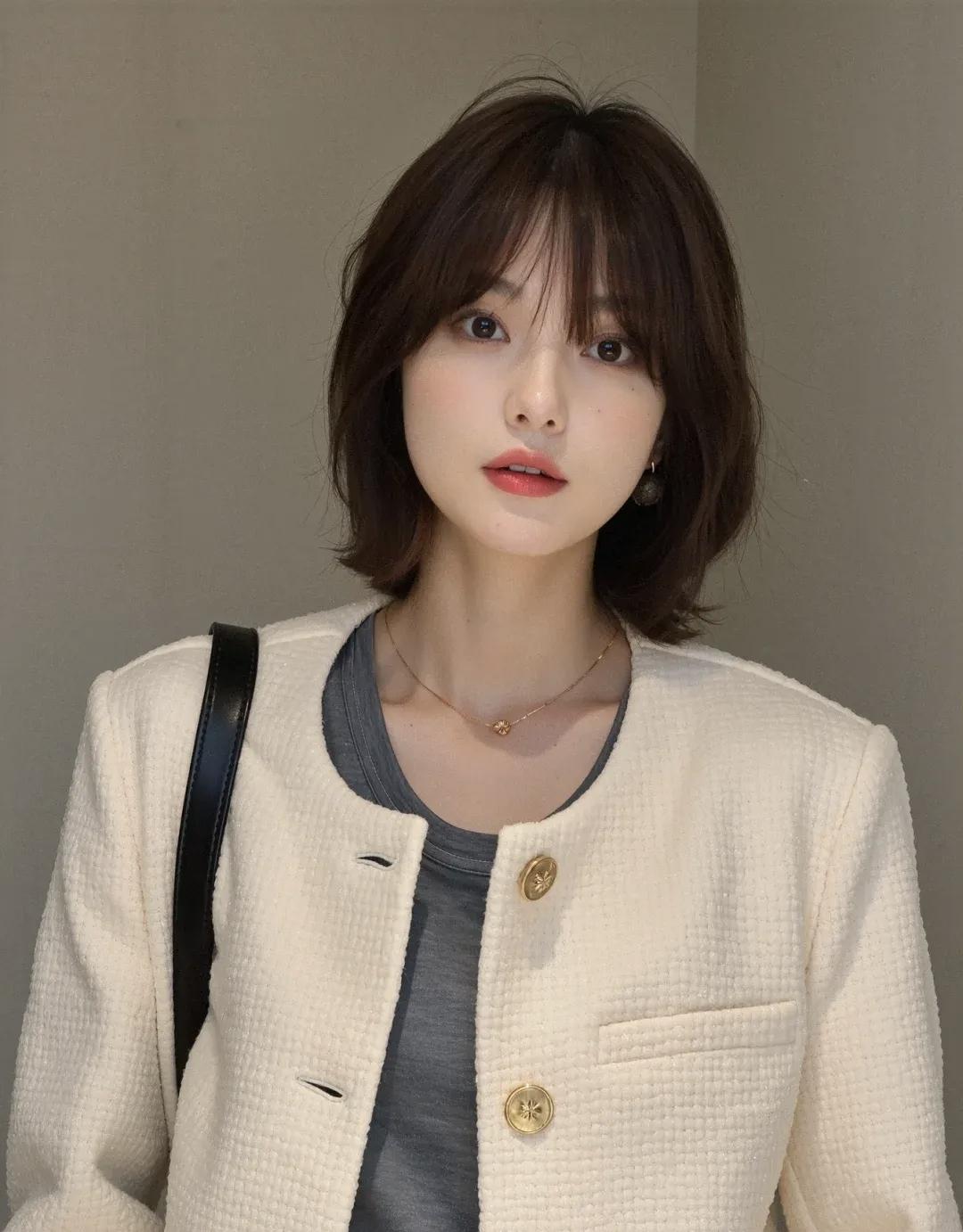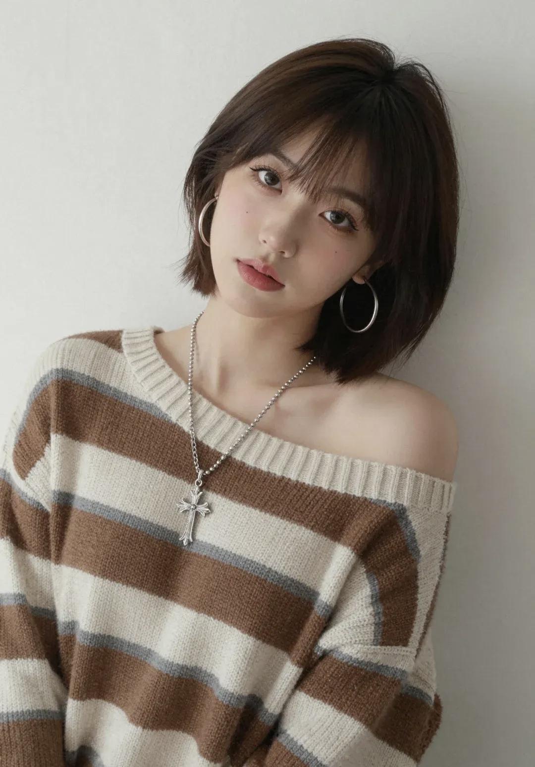 甜美少女风,短发配各种穿搭,温柔笑颜,时尚减龄显气质皮衣穿搭 美女皮衣穿搭 短发皮衣造型 穿搭 发型 短发