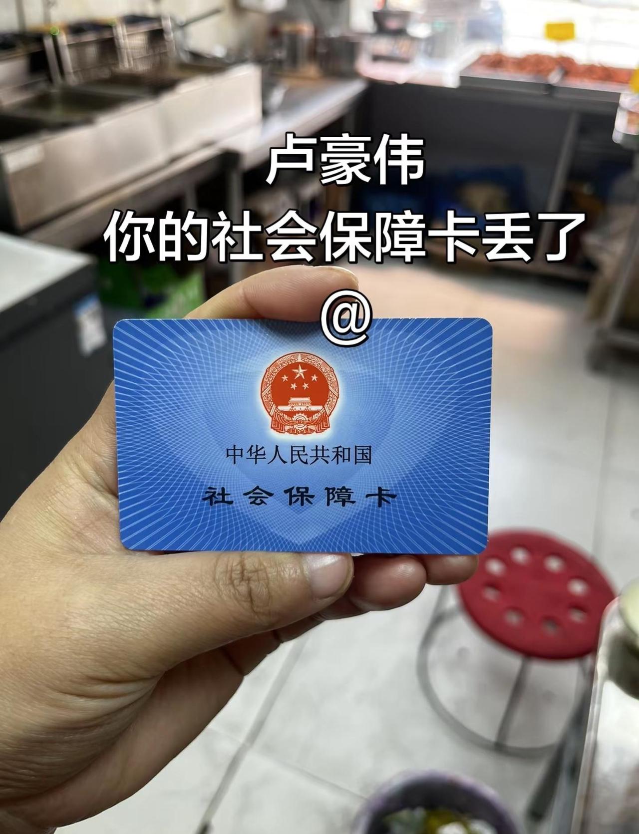 卢豪伟你的社会保障卡丢了,现在在我这呢,我在丰乐路上捡的