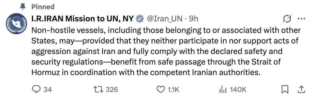 伊朗一招封神!背后必有高人指点!霍尔木兹海峡划清红线,美国护航阴谋彻底破产!3月25日,伊朗常驻联合国代表团正式发表声明,向全球郑重重申:非交战国家的船只,完全可以安全通过霍尔木兹海峡!同时伊朗明确划定通行底线:只要船只所属国家,不参与、不支持任何针对伊朗的敌对行动,并且严格遵守伊朗公布的安全安保规定,就能正常通行,伊朗会保障其航行安全。 这一招堪称精准破局,直接掐住了美国的要害!要知道,美国一直打着维护航行自由的幌子,妄图拉拢多国组建护航联盟,借机在霍尔木兹海峡加强军事存在,对伊朗施压。 可伊朗现在把话挑明了,不针对我的,都能安全过;针对我的,才会受限。全球绝大多数国家,都只是想正常通过霍尔木兹海峡进行贸易、运输能源,根本无意与伊朗为敌,也不想盲目追随美国搞敌对行动。如今有了伊朗的安全承诺,这些国家的船只完全能安心通航,谁还会愿意加入美国的护航集团,平白无故得罪伊朗,引火烧身? 美国原本想借海峡局势制造紧张,裹挟盟友抱团施压,结果伊朗这一清晰划界,瞬间让其护航预谋失去了立足根基,所谓的联盟还没成型就已胎死腹中。这一招高明啊,建立最广泛的统一战线,是不是有似曾相识之感?