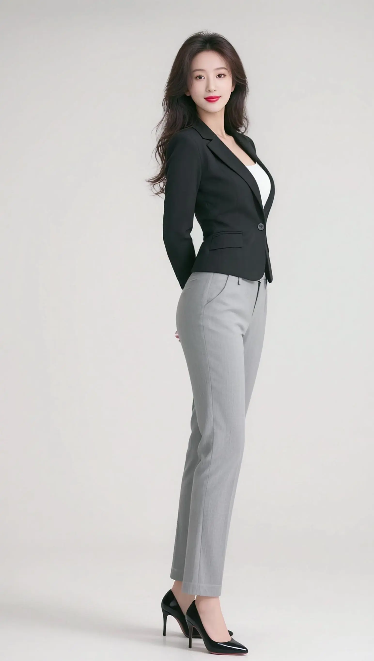 夏日街拍,长发飘逸,白色背心+灰色牛仔裤,清新自然。