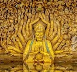 重庆钓友意外“钓”出水中千手观音,半淹水面的奇观,藏着最动人的人间温柔 太震撼了,重庆,一男子在水库钓鱼时,无意间看到远处水面上有个奇怪的雕像,他立马用无人机飞过去拍,才看清竟是一尊千手观音石像,当时水位刚好淹到石像一半,露出来的半身和水里的倒影配在一起,形成了“观自在”景象,画面特别壮观。 视频一经发出,瞬间刷爆全网,无数网友隔着屏幕都被这一幕戳中内心。谁能想到,本是寻常的垂钓时光,男子没等来上钩的鱼儿,却偶遇了这场可遇不可求的人间奇观。水波轻漾,石像庄严,一半静立人间,一半沉于碧波,虚实相融间,禅意扑面而来,仿佛世间所有浮躁都在此刻被抚平。 很多人好奇,这尊石像究竟从何而来?其实它并非千年古佛,也不是神迹显灵,而是上世纪80年代,当地村民心怀虔诚,自发众筹仿照大足石刻千手观音雕刻而成。几十年间,它一直静静沉睡在水库之下,被湖水默默包裹,鲜少有人知晓它的存在。唯有恰逢枯水期,水位恰到好处时,才会露出半身,展现这难得一见的美景。 这场意外的相遇,看似是机缘巧合,实则藏着普通人对美好的虔诚与坚守。村民们用朴素的方式传承信仰,让庄严的佛像扎根故土;钓友无心的一瞥,让这份被岁月尘封的美好重见天日。没有刻意的雕琢,没有精心的策划,这份自然与人文的完美邂逅,远比刻意打造的景点更动人心弦。 有人说,这是一场双向奔赴的遇见,石像等来了懂它的人,钓友收获了不期而遇的惊喜。生活何尝不是如此,总有些美好,藏在平凡的日常里,在不经意间撞入眼帘。不用执着于它是否是文物,这份震撼心灵的景象,这份藏在民间的质朴温情,早已足够珍贵。 水位回升后,石像或许会再次沉入水中,回归沉寂,但这一刻的美好,早已被镜头定格,留在无数人心中。你有没有过这种不期而遇的小美好?欢迎在评论区聊聊,分享你身边的平凡惊喜!千手观音显圣 水底佛像