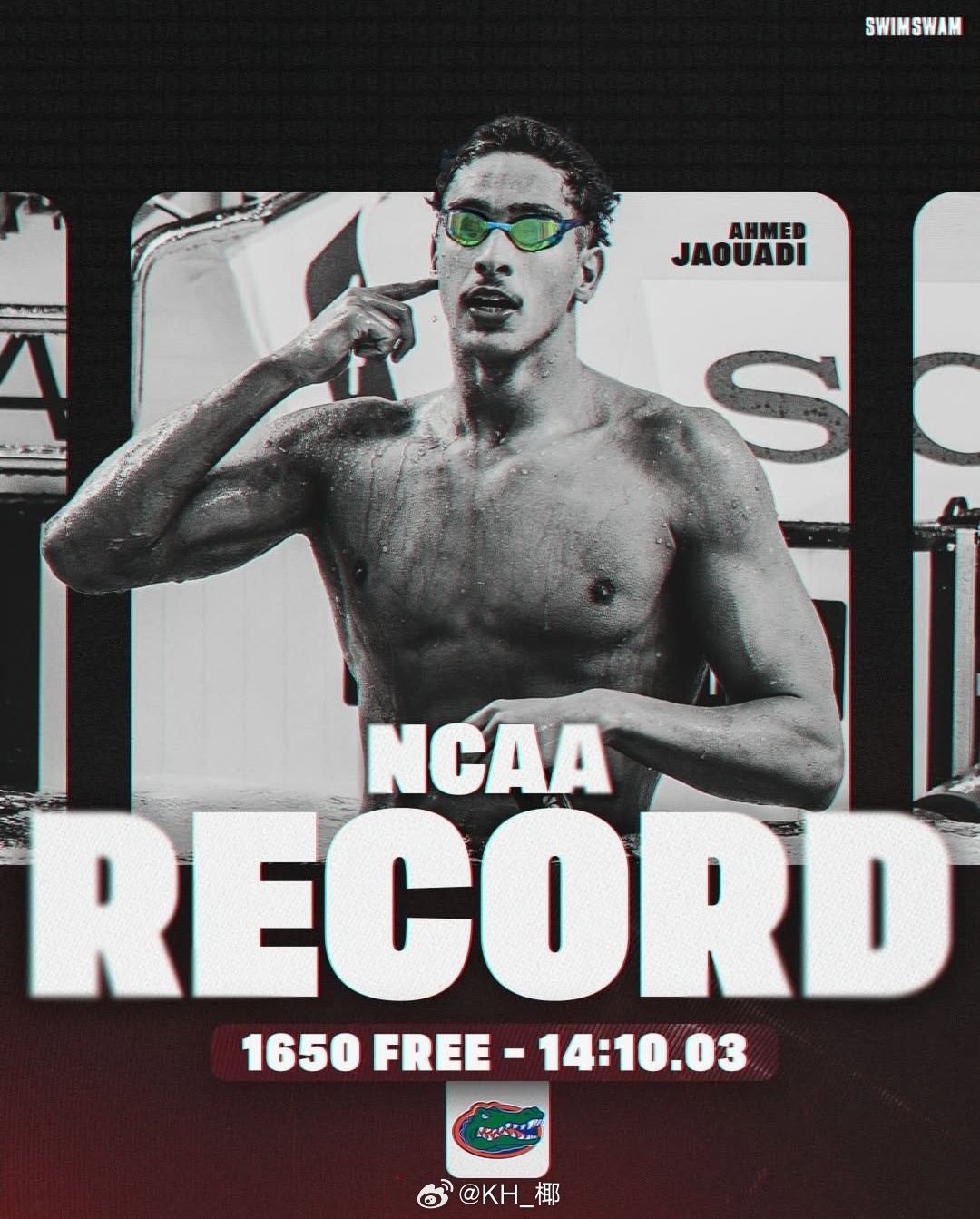NCAA DI Men's Championships 男1650码自由泳比赛,Ahmed Jaouadi作为大一新生代表Florida Gators出战,14:10.03打破同校校友Bobby Finke保持6年的NCAA和全美公开纪录! 期待在今年长池的表现