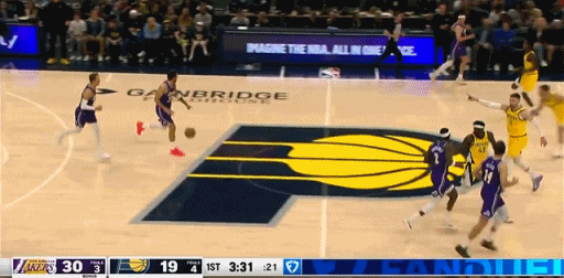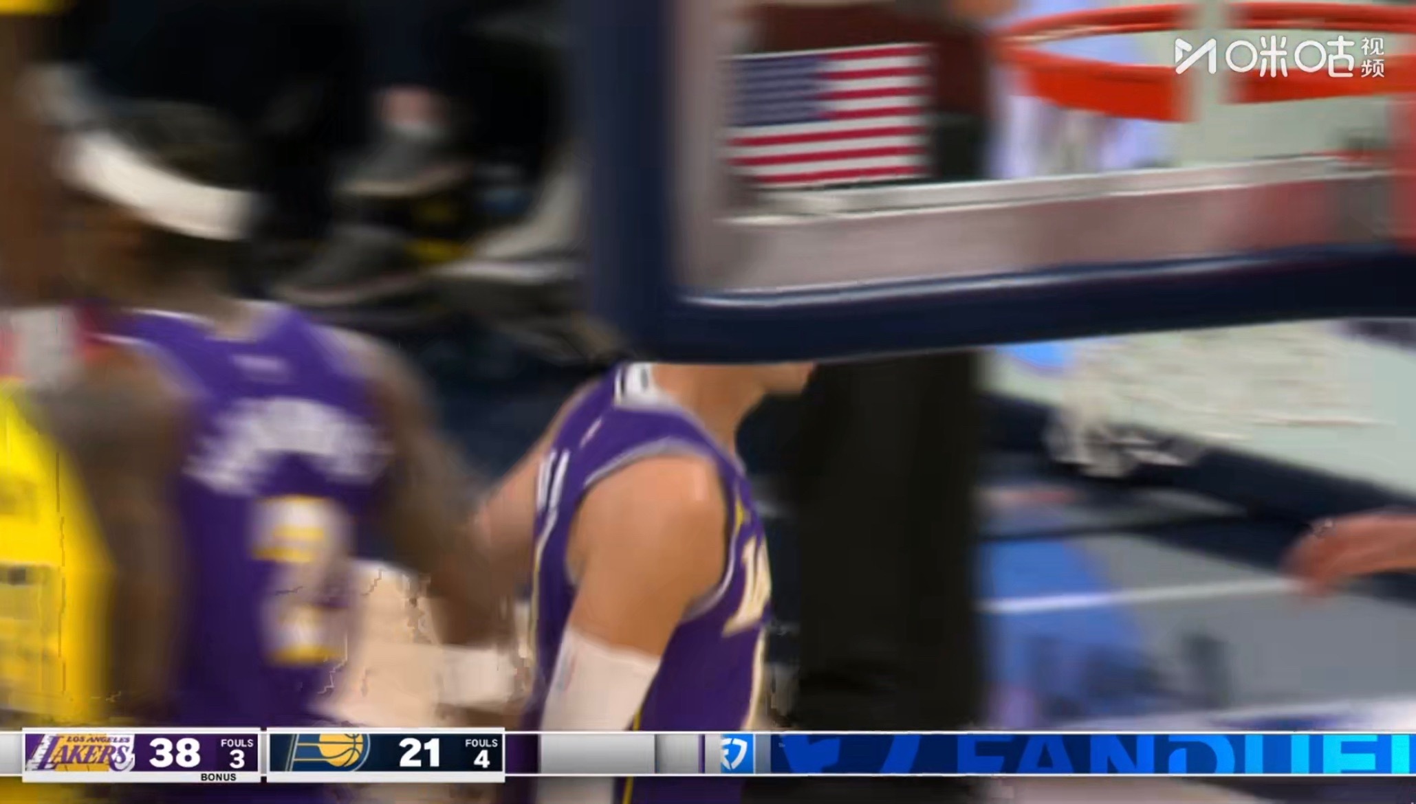 肯纳德又一个三分,步行者被迫叫了暂停。湖人vs步行者