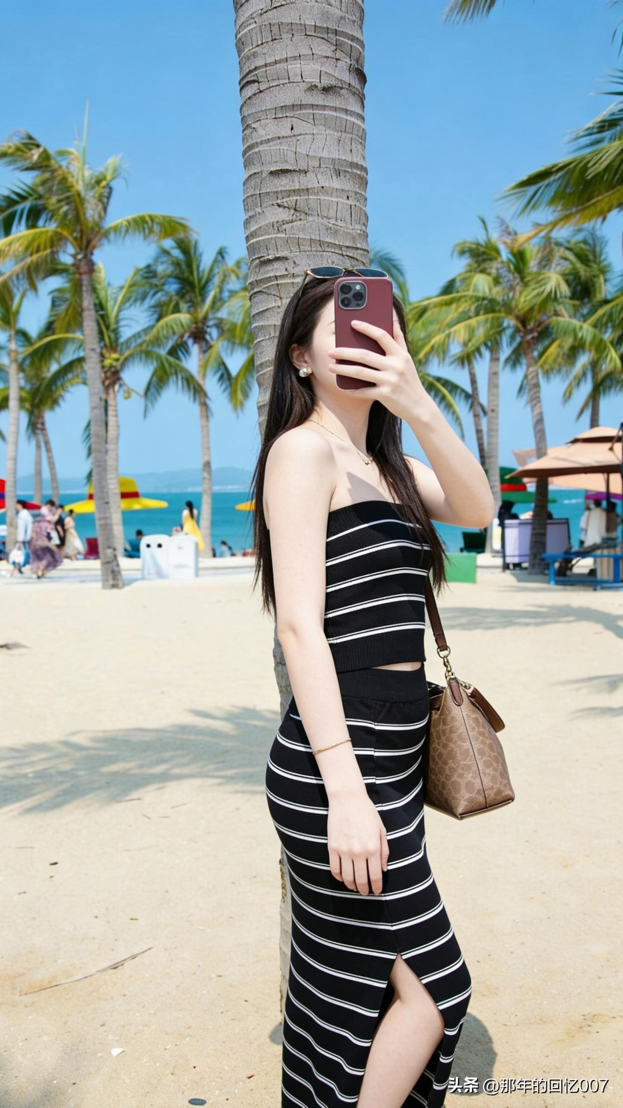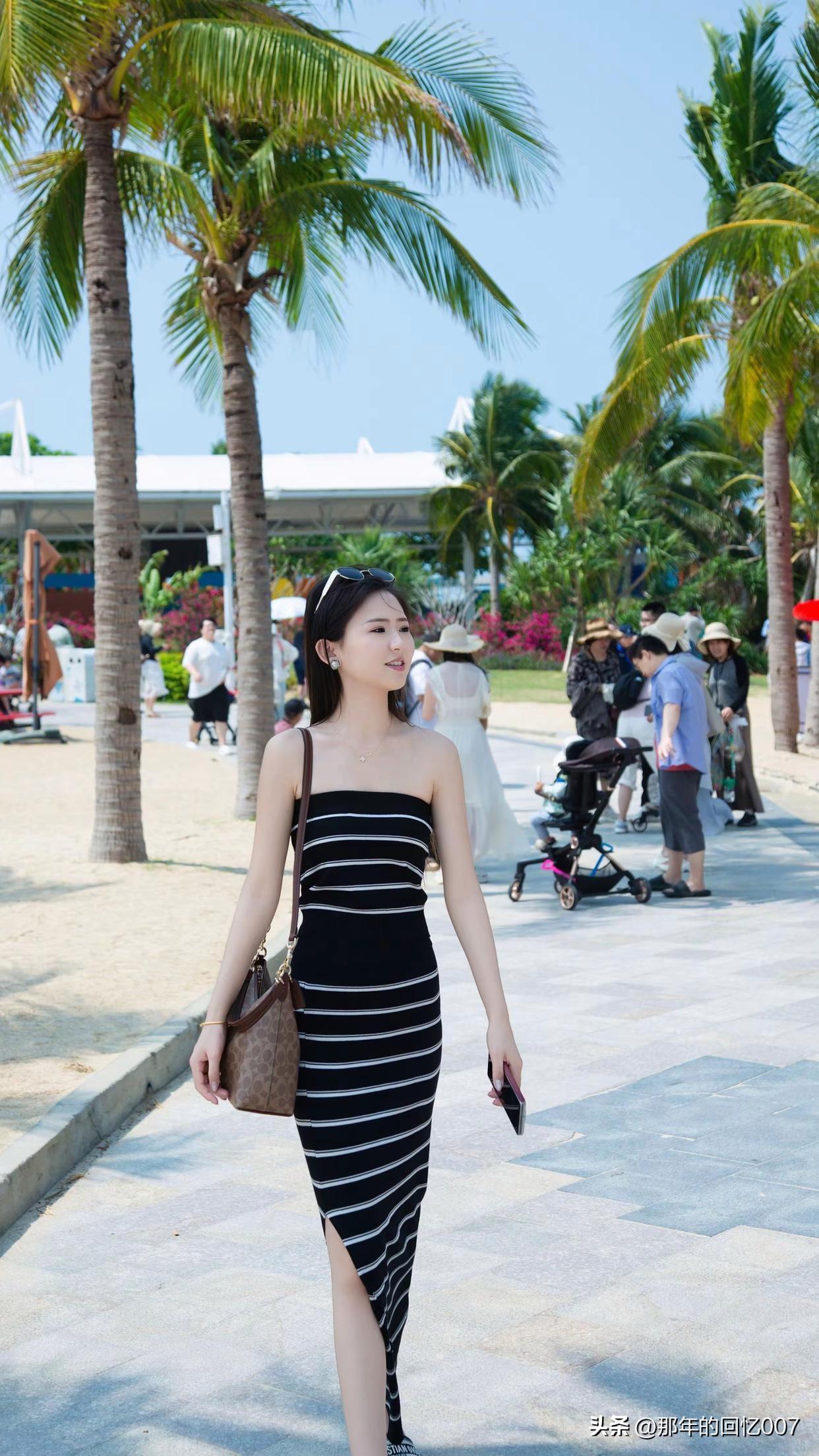 沙滩上,那个身着黑白条纹裙搭配墨镜的女孩太亮眼了。黑白条纹经典又时尚,简约中透着高级感,在阳光下显得格外清新。墨镜一戴,瞬间气场全开,既防晒又增添了几分神秘。 她惬意地漫步在沙滩上,任由海风轻抚发丝,阳光洒在身上,每一个动作都散发着自信。海浪一波波涌来,她偶尔停下,感受细沙从脚趾间滑过。这画面就像一幅美好的画卷,让人忍不住感叹,时尚与自然融合得如此美妙,在沙滩上尽情享受阳光和海风,简直太会生活了。