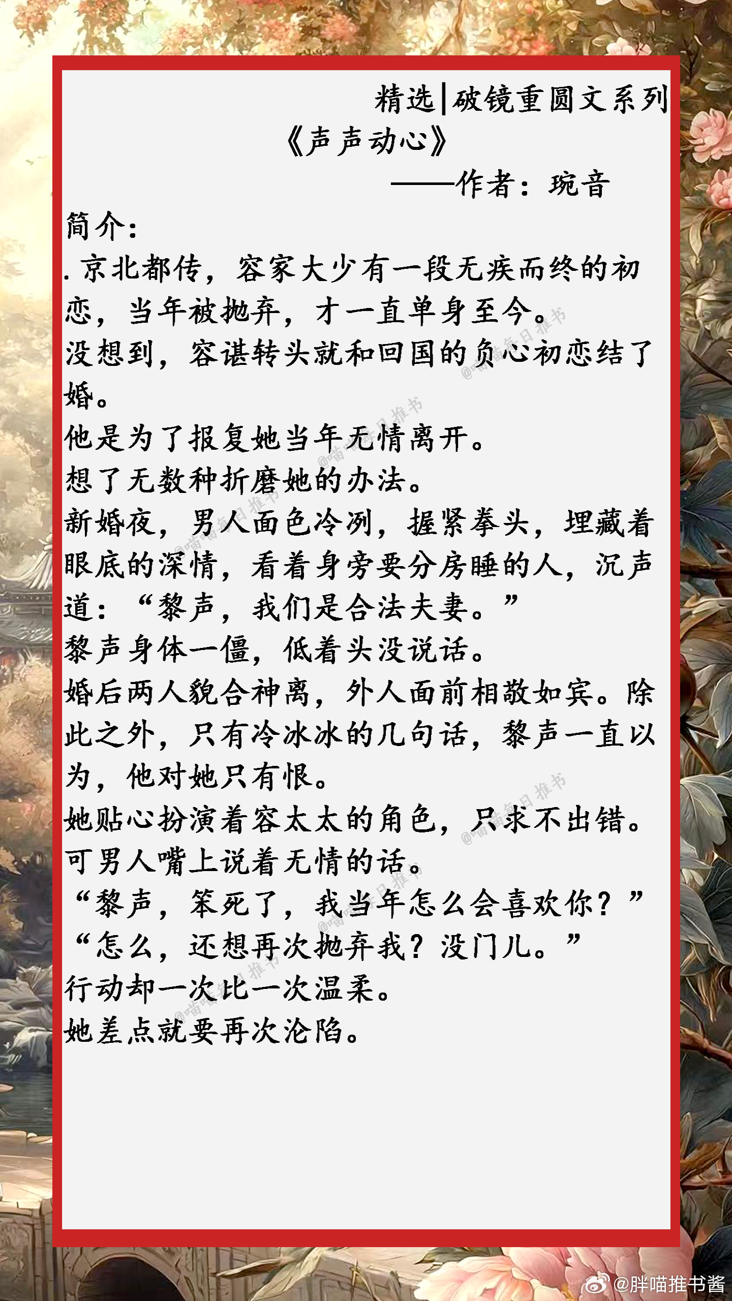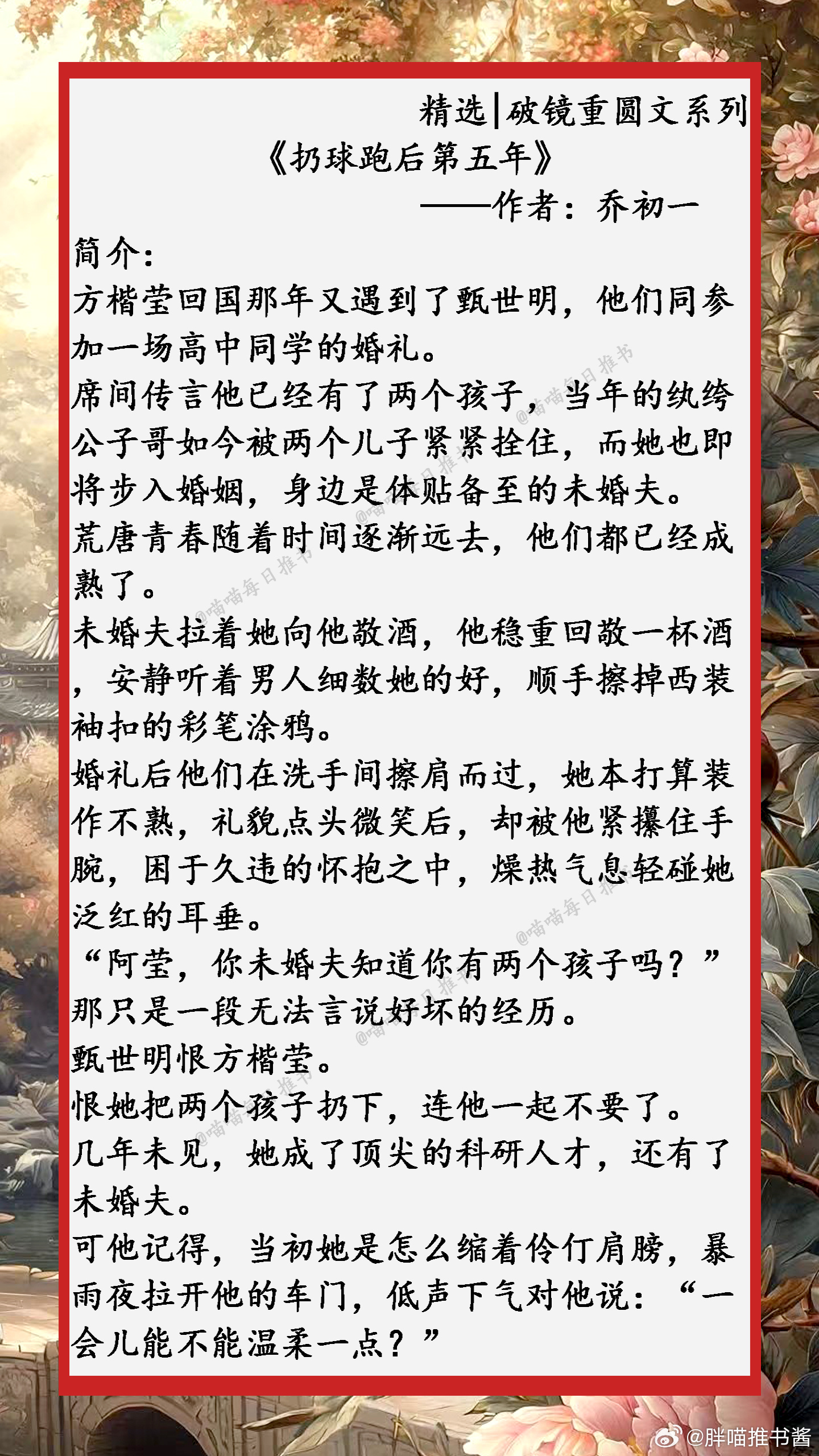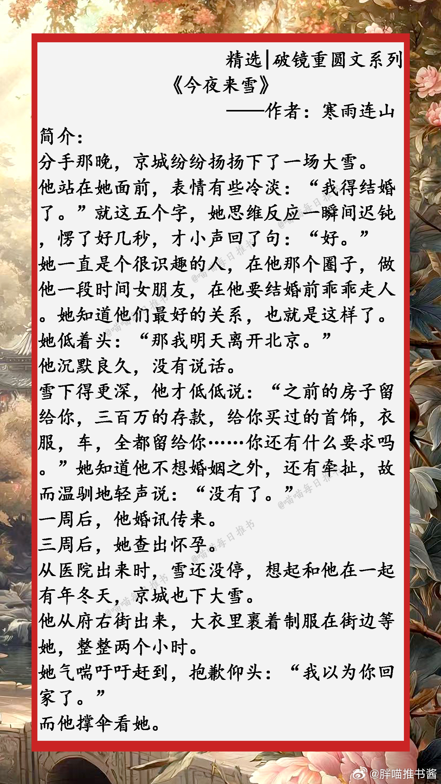 精选【破镜重圆文】系列合集:任凭岁月轮回,时光流转,我还是一直喜欢你,生生不息......小说推文好看的小说 1、《引冬序》 ——作者:姜温夏2、《声声动心》——作者:琬音3、《今夜来雪》——作者:寒雨连山4、《许愿雨》——作者:祝古栗5、《扔球跑后第五年》——作者:乔初一6、《寒栀》——作者:雾里青7、《夏夜奔逃》——作者:北倾8、《春夜潜行》——作者:宜糖9、《拿了五百万离开前任后》——作者:抱猫女