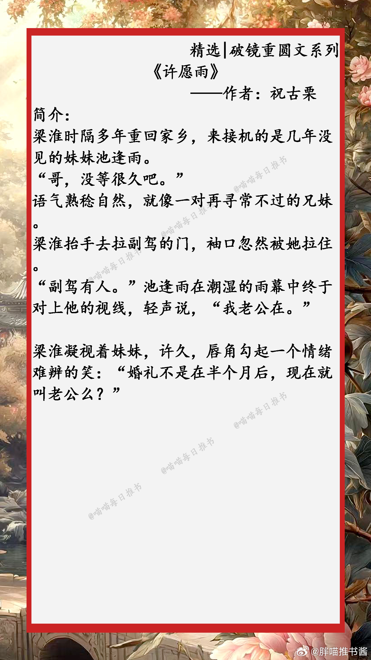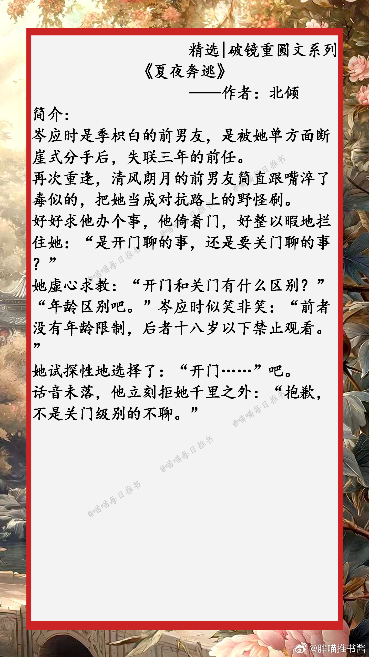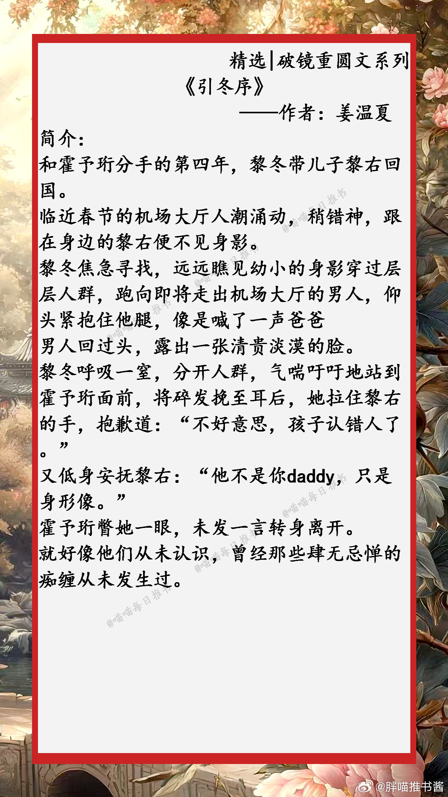 精选【破镜重圆文】系列合集:任凭岁月轮回,时光流转,我还是一直喜欢你,生生不息......小说推文好看的小说 1、《引冬序》 ——作者:姜温夏2、《声声动心》——作者:琬音3、《今夜来雪》——作者:寒雨连山4、《许愿雨》——作者:祝古栗5、《扔球跑后第五年》——作者:乔初一6、《寒栀》——作者:雾里青7、《夏夜奔逃》——作者:北倾8、《春夜潜行》——作者:宜糖9、《拿了五百万离开前任后》——作者:抱猫女