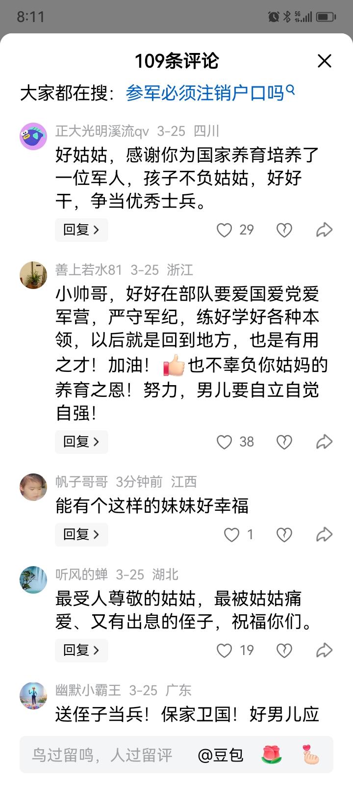 哥哥走了12年,她把侄子送进军营:这滴泪,是牵挂也是荣光 嵊州的送兵现场,一位白衣女子攥着侄子的手,眼泪止不住往下掉。 别人都是爸妈送孩子入伍,她却以姑姑的身份,站在了本该属于哥哥的位置。 12年前哥哥离世,她接过抚养侄子的重担,从蹒跚学步到挺拔军装,把一个失去父亲的孩子,养成了保家卫国的军人。 如今侄子成功入伍,户口注销,她笑着哭,哭的是12年的含辛茹苦,笑的是孩子终于接过了守护家国的接力棒。 网友说:“这是最伟大的姑姑,也是最争气的孩子。” 她用半生辛劳,为国家培养了一名战士;他用青春热血,告慰父亲的在天之灵。 这一送,送的是责任,是传承,更是中国人刻在骨子里的家国情怀。 送兵感人