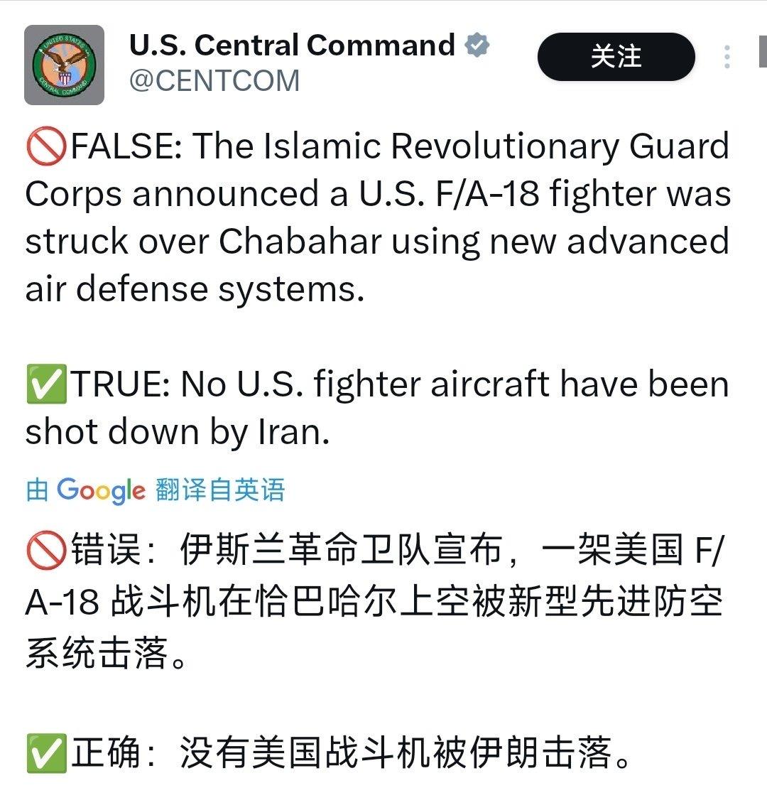 伊朗称击落美军F18战机! 伊朗伊斯兰革命卫队当地时间3月25日宣布,伊朗防空系统当天下午精准击中美军一架F-18战斗机,该战机坠落印度洋。 但美军中央司令部立马出来否认,只要不承认,就没有被击落。 不过这视频太证据确凿了,美国人自己都嘲讽他们。