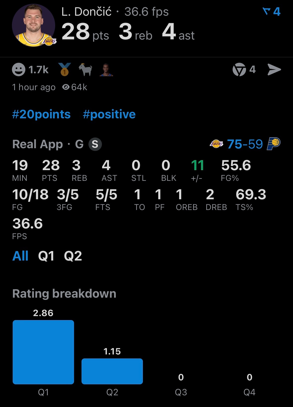 詹姆斯15分6板6助攻,11投6中东契奇28分3板4助攻,18投10中湖人vs步行者