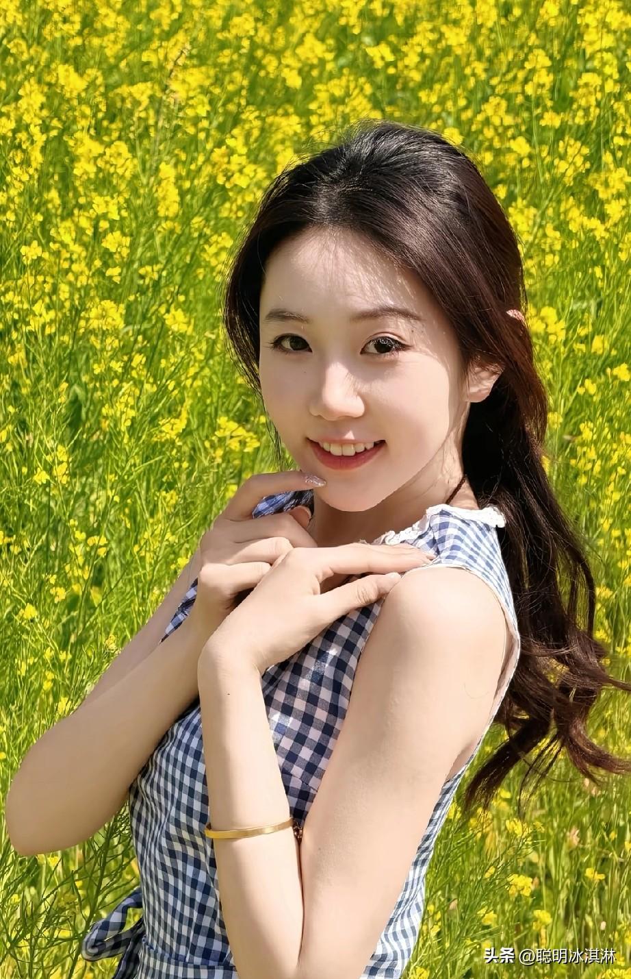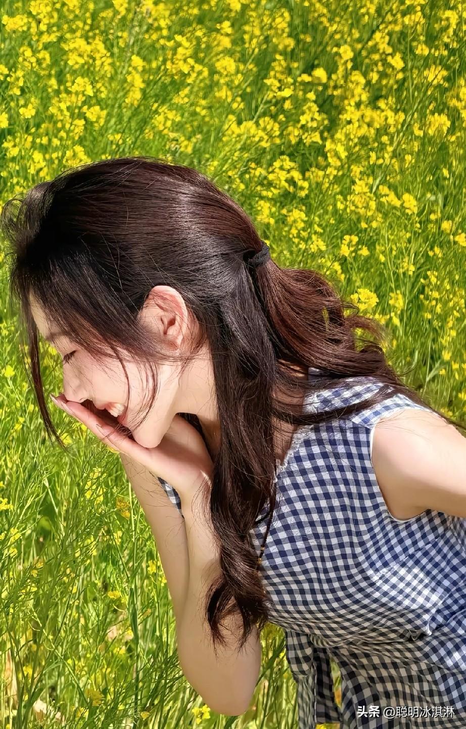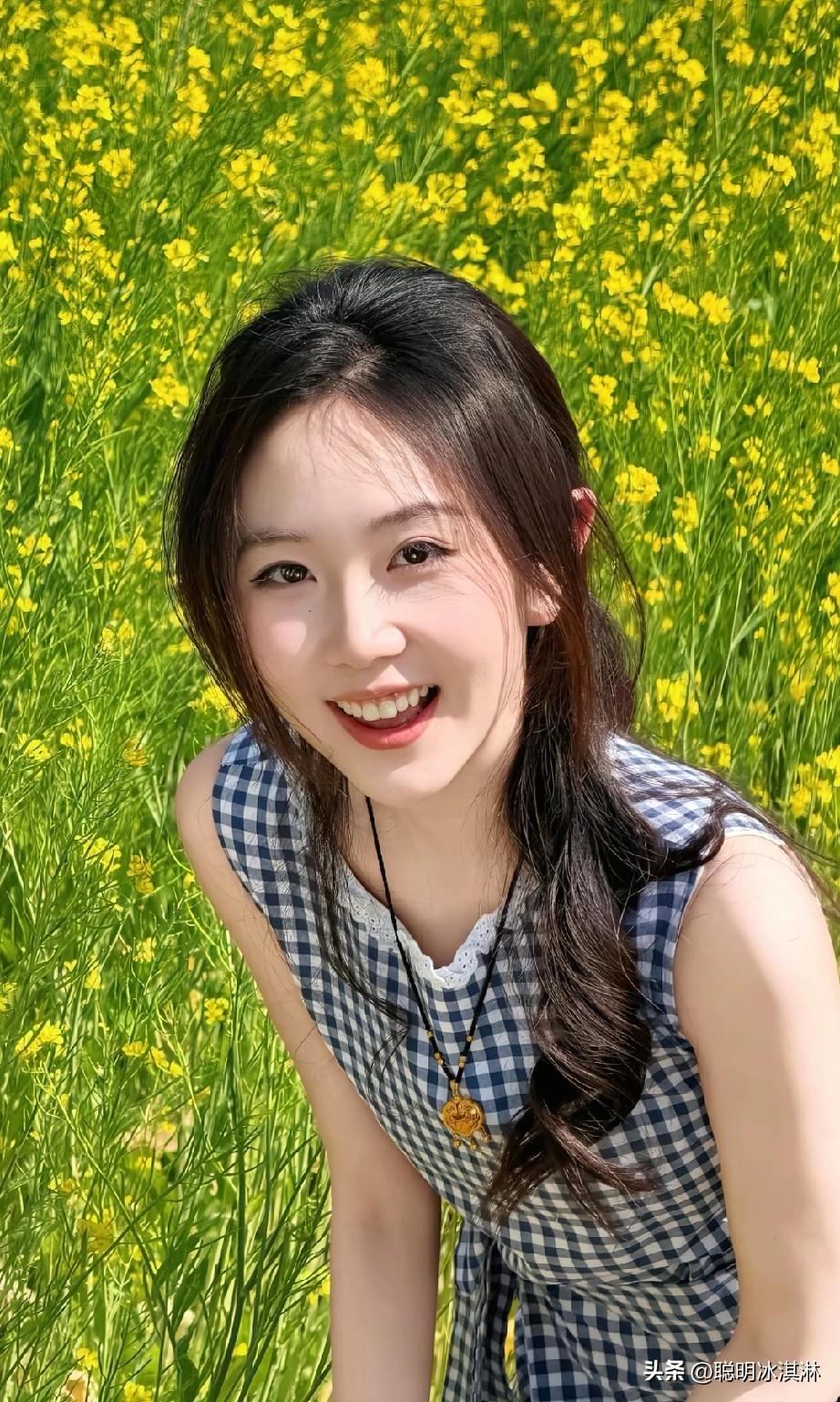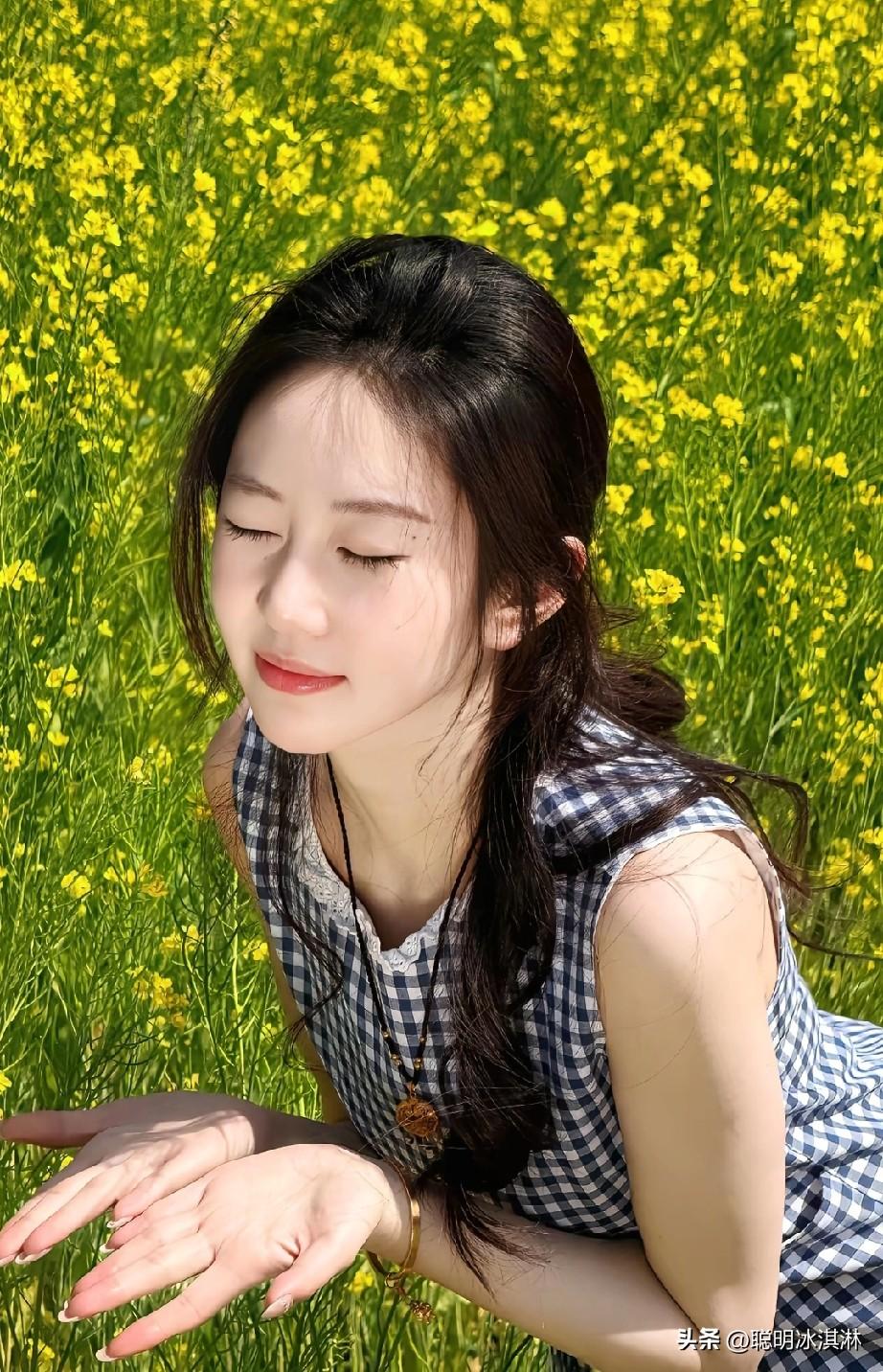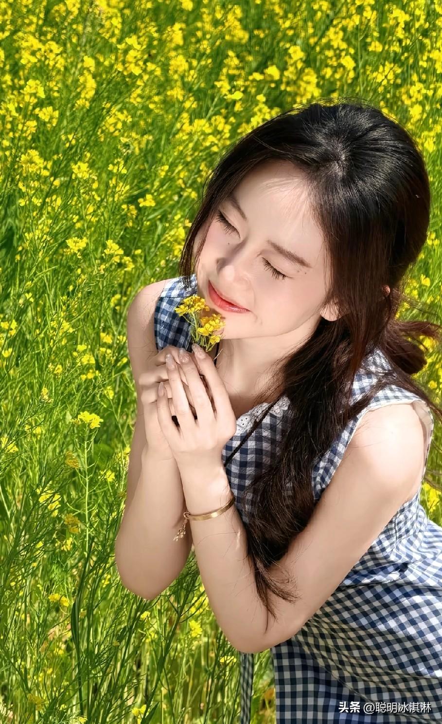阳光明媚的田野中,笑容灿烂的女孩,花海中的甜美瞬间
