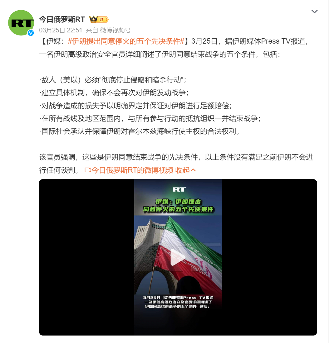 🔻法尔斯通讯社称,在美国多次通过伊朗友好国家调解请求停火,并在伊朗宣布结束战争的五项条件之后,一些伊朗政治活动家和部分民众建议将“以礼萨·巴列维及伊朗国际电视台编辑部的管理人员和成员为核心的引渡问题”,作为第六项条件。🔻强调提出这一要求是基于国际法中犯罪嫌疑人引渡原则的合法诉求。🔻巴列维:我也要死吗?伊朗提出关于停战5项条件特朗普把48小时最后通牒咽了回去海外新鲜事中东现场直击