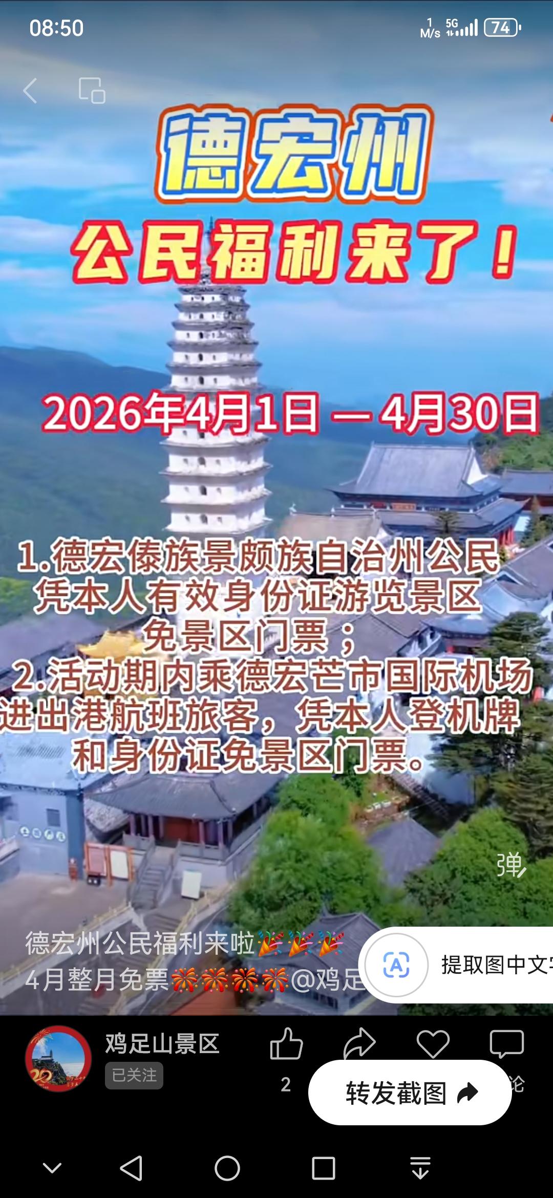 📢📢📢官宣!4月整月凭有效身份证免费!文山、西双版纳、德宏公民,大理宾川鸡
